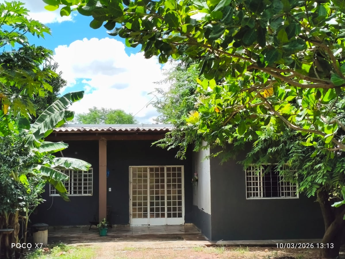 Rustikalna hiša z odprto kuhinjo sredi dveh majhnih cerrado nasadov. Veliko narave za počitek, popolnoma zasebno. Območje tabornega ognja. Hiša ima veliko suito z zakonsko posteljo (Queen). Potopna kopalna kad. Soba je povezana s suito s 3 enojnimi posteljami. Zunanje stranišče. Obroki po naročilu pri partnerjih. Tbm Partnerstvo s turističnim vodnikom. Do središča mesta (festivalski trg) nas loči 8 minut vožnje.