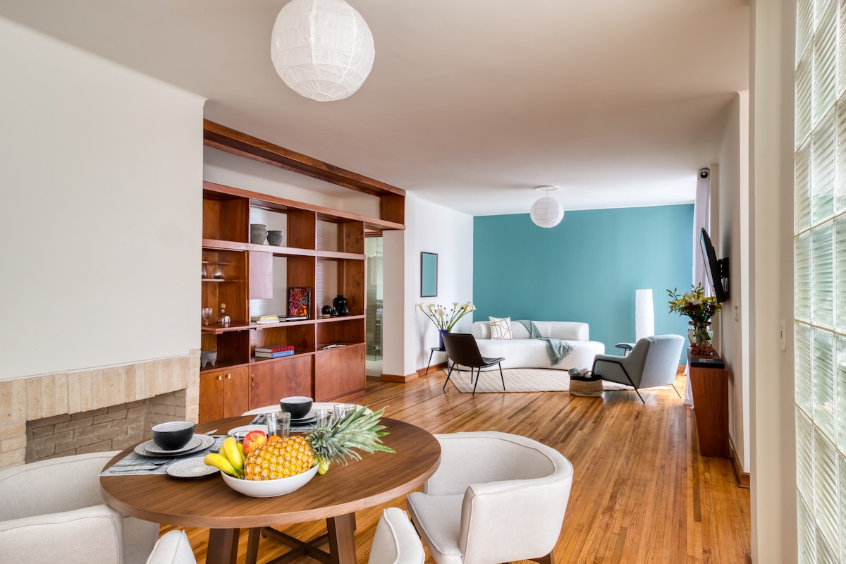 This one of a kind and cozy pent-house is located inside one of the most emblematic developments built in La Condesa neighborhood. Its architecture is a contemporary version of Art Deco. A style that defines La Condesa. It is located in a beautiful, tree-lined area. The atmosphere is very family-oriented, with young and vibrant people. The surroundings invite us to step out, walk, relax and discover new experiences.