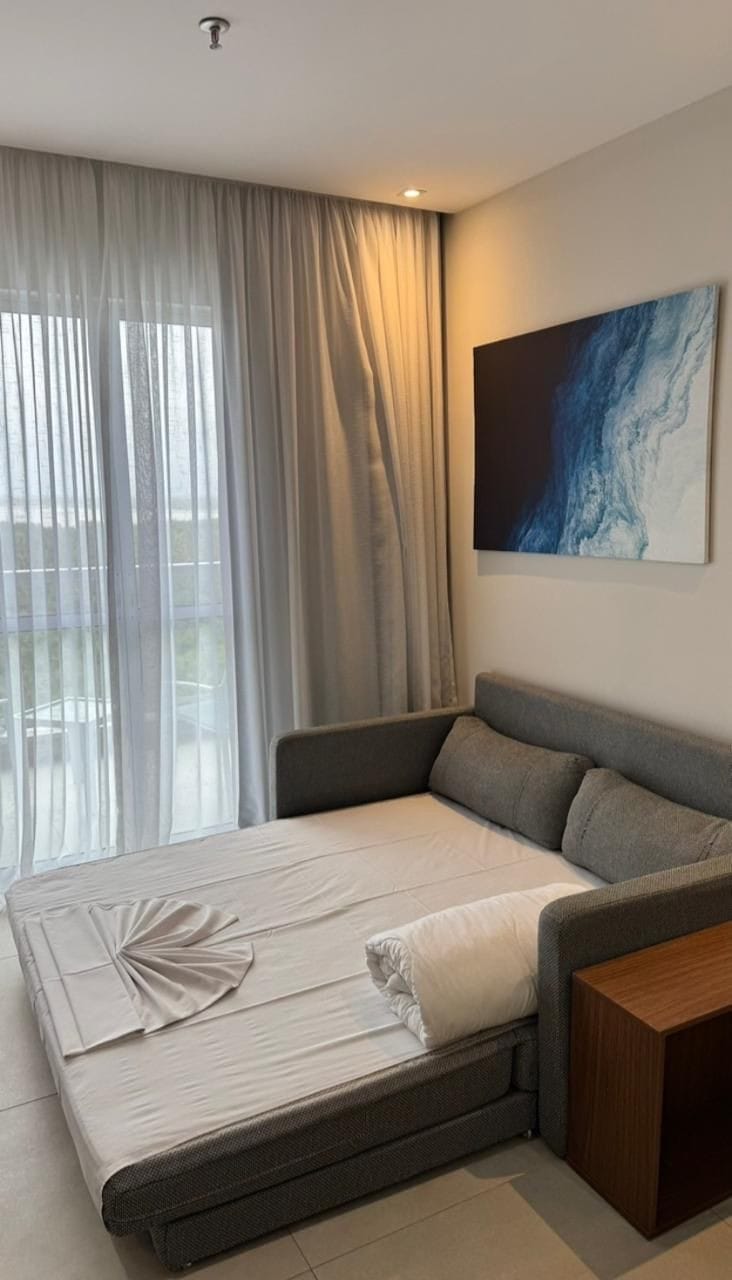Uživajte v udobnem stanovanju v Condominio Murubira ob čudoviti plaži Murubira! Stanovanje ponuja: klimatsko napravo, hladilnik, kompaktni štedilnik z 1 usti, udobno zakonsko posteljo s pomožno posteljo in parkirno mesto za vozilo. Sprostite se in uživajte v skupnih prostorih, vključno z bazenom in teraso z mizami, da uživate v pogledu na plažo. Za vaše udobje je v preddverju na voljo tudi TV in Wi-Fi. Posteljnine ne nudimo. Če jo potrebujete, nam to sporočite.