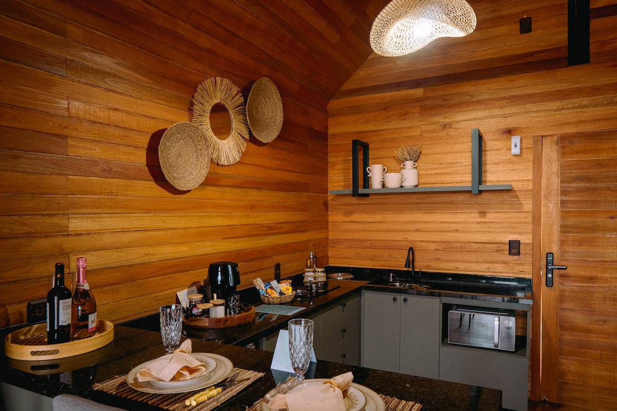 Uma cabana A frame imersa na mata nativa e nos parreirais de uma família de origem italiana. Projetada para acordar com o som dos pássaros e dormir com o barulho da água. O ponto alto fica logo na chegada, o deck fica em cima de uma cachoeira. A cozinha é completa com utensílios de ótima qualidade. O banheiro tem vista para a mata, banheira de imersão e amenities L'Occitane. Todos os cômodos são decorados nos mínimos detalhes. Ideal para relaxar e se colocar no compasso certo da vida.
