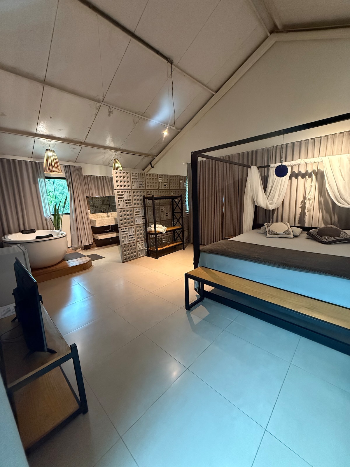 IDEALNO ZA PARE! Zasebni jacuzzi in spektakularen razgled na dolino Taquaruçu. Bungalov je idealen kraj za sprostitev in ponovno povezavo. Odpravite se na 5-minutni pohod in odkrijte jezero z ribami in še več, slap. Tukaj vas narava vabi na trenutke miru in prenove. Le 5 minut vožnje vas loči do središča Taquaruçua, restavracij, pekarn in tržnic. Kuhinja, minibar, klimatska naprava in zasebna kopalnica. Pridite in doživite nepozabne trenutke!