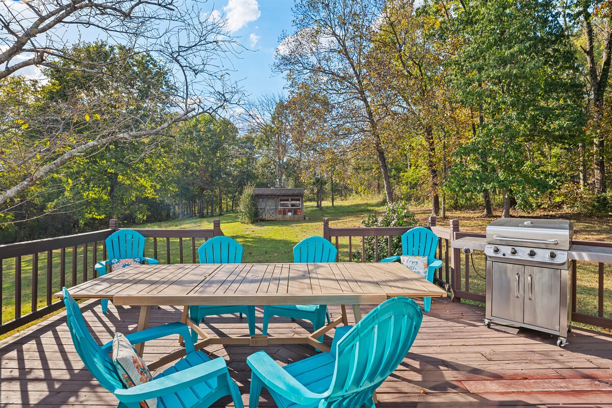Zasebna luksuzna hiška na deželi, ki se nahaja v gozdu, vendar blizu edinstvenih doživetij v kraju Cripple Creek Retreat. Bivajte v profesionalno oblikovanem prenočišču in uživajte v tišini in odmaknjenosti, pripravite smare ali skuhajte večerjo okoli ognjišča ali si privoščite počitek v viseči mreži. Nahajamo se le nekaj minut stran od središča Murfreesbora in 45 minut stran od središča Nashvilla. Odlične lokalne restavracije in koncerti v živo/koncerti na prostem v Hop Springsu ali brunch v parku Readyville Mill ali starinski v bližini.