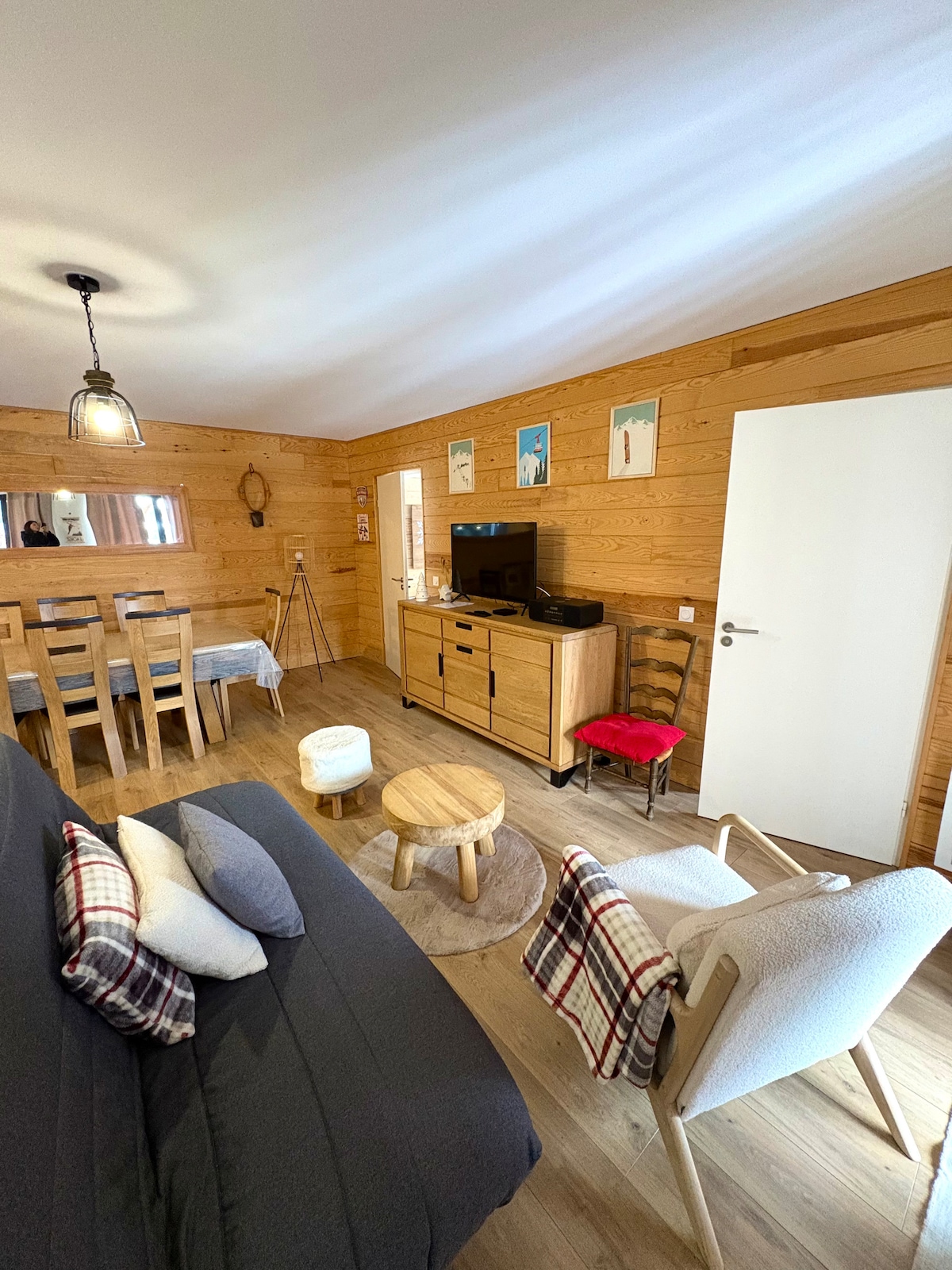 Naš studio je bil pravkar prenovljen ...da bi vam ponudil prijeten majhen kokon tik ob smučiščih in središču življenja letovišča. Na voljo so vam: pečica, mikrovalovna pečica, družabne igre, povezana televizija...in miren balkon s pogledom na dolino, ki ni spregledan. Za spanje: 1 zelo udoben raztegljiv kavč v dnevni sobi in 3 pogradi v gorskem kotu.