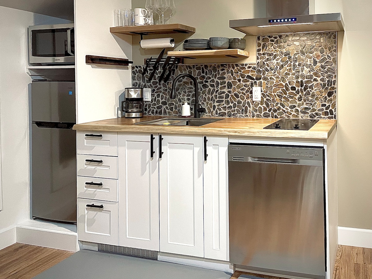 Prepustite se miru. Nekaj minut vožnje južno od mesta, vendar se počutite daleč od vrveža življenja. Celotna suita, ki se razprostira na 4 hektarjih, je obrnjena proti zahodu z neprekinjenim razgledom na dolino spodaj in na veličastno skalnato gorovje. Uživajte v pokriti terasi in ognjišču s propanom z zunanjo sedežno garnituro. Ta suita je kot nalašč za par, ki išče miren umik ali bazo za raziskovanje okolice. *OPOMBA* Masažna kad je na voljo samo sezonsko (od septembra do maja)