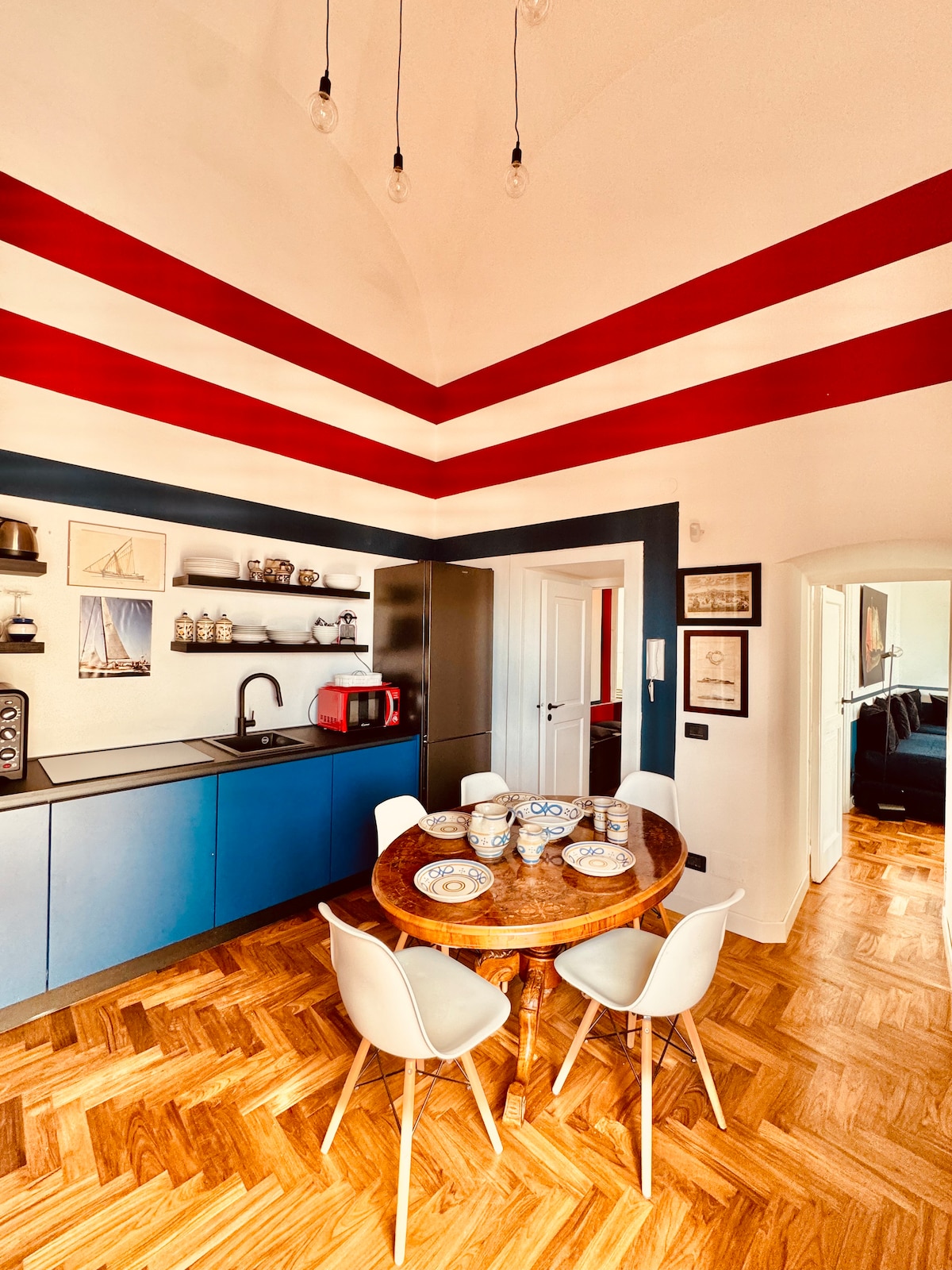 Stanovanje v 4. nadstropju stavbe iz leta 1859 v zgodovinskem središču Neaplja. Velik in gostoljuben bo kot nalašč za preživljanje čudovitih počitnic med lepotami našega Neaplja. Opremljen je z dvigalom in je sestavljen iz: vhod / dnevna soba s francoskim raztegljivim kavčem in kuhinjo; dvoposteljna soba z raztegljivim kavčem, idealna za otroka; kopalnica z vsem udobjem. Dve sobi z balkoni neposredno gledajo na čarobni Vezuv. Idealno za velike družine ali pare. Ko rezervirate, si oglejte naš vodnik.