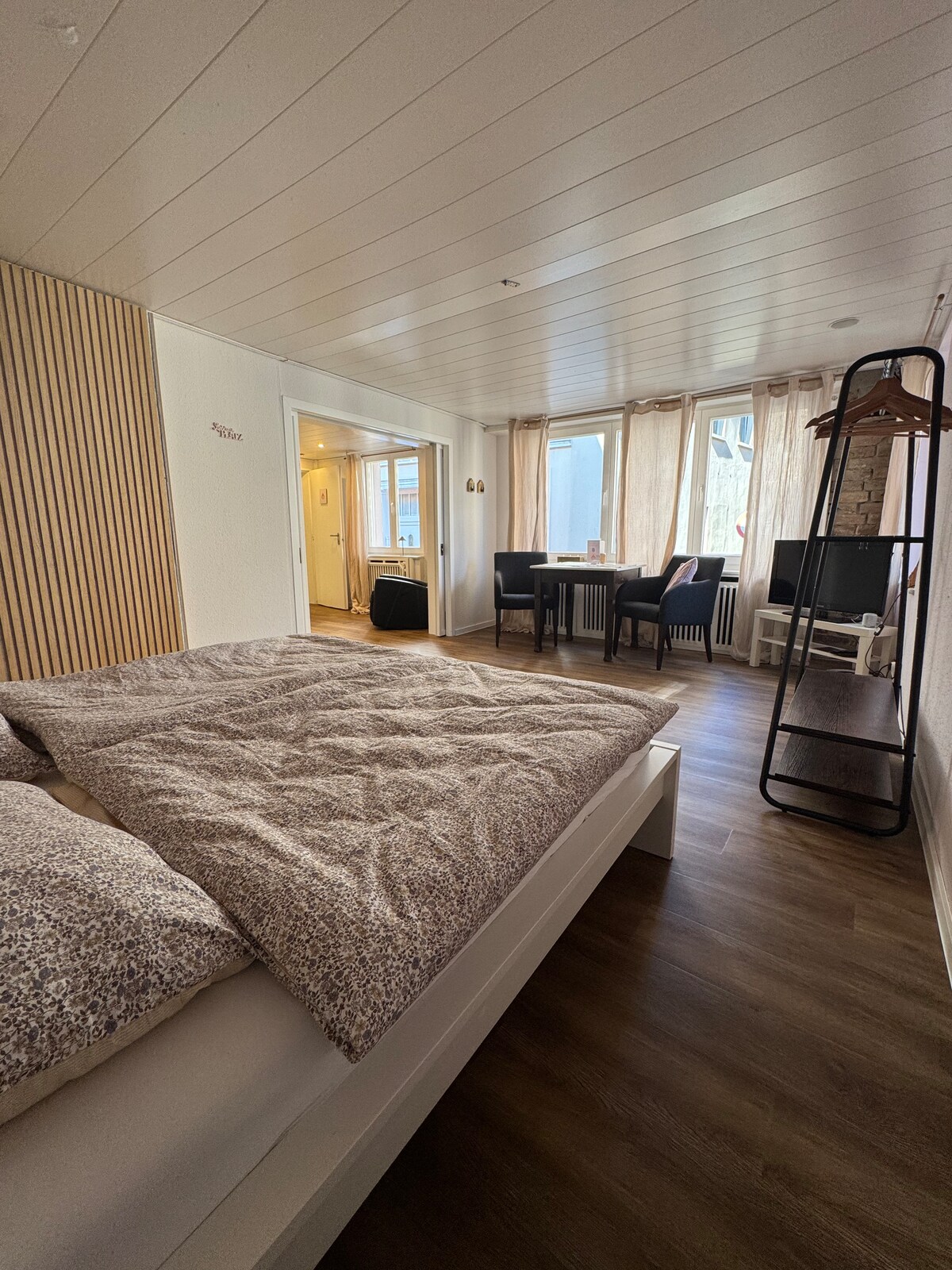 To svetlo stanovanje se nahaja v središču Steinfurt-Borghorsta in združuje zgodovinski čar s sodobnim udobjem. Prenovljena stara stavba navdušuje z visokimi stropi, velikodušnim občutkom prostora in prijetnim vzdušjem. Zaradi osrednje lokacije so kavarne, restavracije, trgovine in javni prevoz oddaljeni le nekaj minut hoje. Idealno za poslovne potnike, pare ali kratke počitnice.
