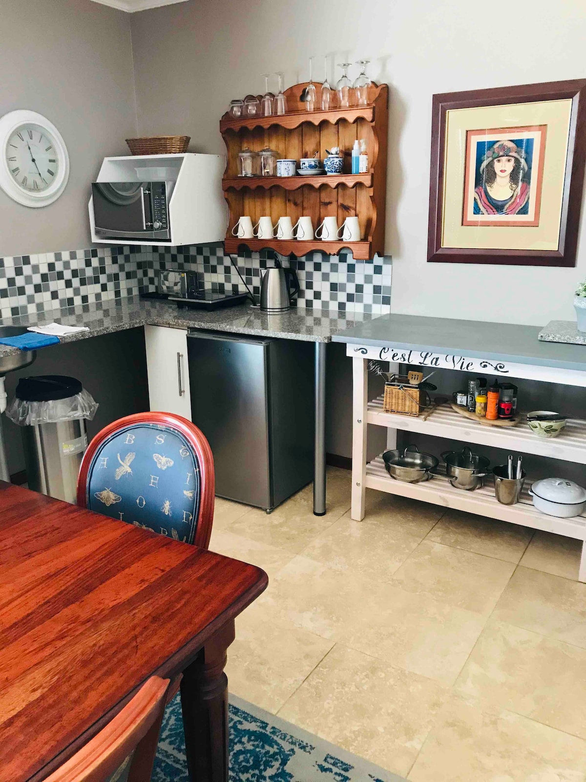 - 150 meters from the Franschhoek Wine Tram - Nespresso with pods - Free and secure parking -Fast and reliable wifi (with backup power for power outages) The perfect escape from the city and an ideal vacation rental. Trendy and relaxing space with designer interior and fresh, clean linen. Inside you'll find a comfortable couch, Smart TV, and natural lighting. Airy and clean bathroom. The best way to explore town main road is on foot