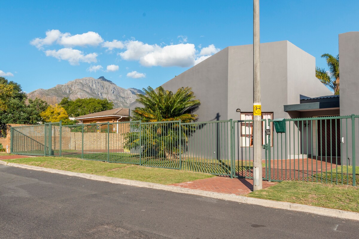 Real Stellenbosch living ,walk away from Historical Town Centre prostorno dvonadstropno vrtno stanovanje s kuhinjsko nišo,dnevno sobo ,spalnico , kopalnico v spalnici, zasebnim vhodom in bazenom . Brez izpada električne energije! Hiša ima sončno energijo in sistem baterij Popolnoma se nahaja v čudoviti ulici, obloženi s hrastovimi drevesi v zgodovinskem kraju Mostertsdrift s pogledom na park Jan Marais,peš od univerze, športnega centra Coetzenburg v bližini pohodniških in kolesarskih poti.