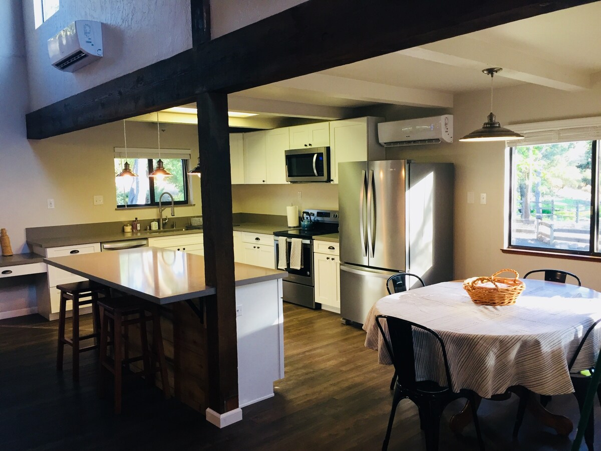 Iščete razkošen oddih v osrčju severne Kalifornije? Potem ste prišli na pravo mesto. Dobrodošli v naši prostorni in sodobni 3 postelji, 2 kopalnici, ki se nahaja v vznožju Sierra Nevade. To prenočišče ima veliko teraso in paviljon iz sekvoje, polnilnik za električna vozila, več ognjišč in veliko teraso, popolnoma opremljeno telovadnico v slogu CrossFit, velik otok z žarom, opremo za delo od doma, veliko kuhinjo, ekološki zelenjavni vrt in sadovnjak ter vso opremo, ki jo potrebujete.