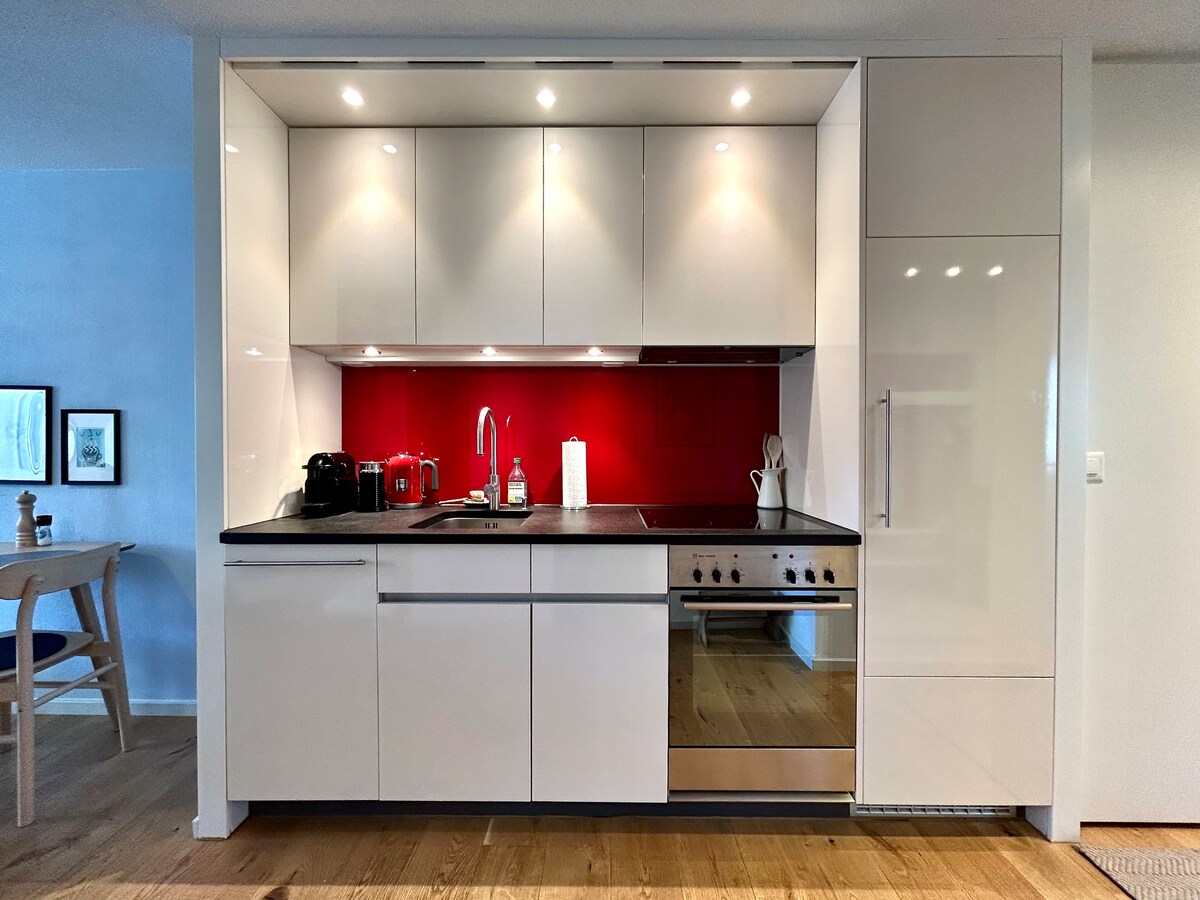 Sodoben studio v Laaxu s pogledom na gore, v neposredni bližini smučarskih vlečnic. Vrhunska zakonska postelja (180 × 200), raztegljiv kavč, 50-palčni pametni televizor Samsung, hiter Wi-Fi in popolnoma opremljena kuhinja (pečica, štedilnik, pomivalni stroj, Nespresso). Sončen balkon z zatemnitveno razsvetljavo. Bazen in savne v stavbi (ko so odprte). Brezplačno zunanje zasebno parkirišče, zasebno polnilno mesto za električna vozila, kartica za goste je vključena. V bližini je jezero za kopanje (brezplačen vstop) in brezplačno smučišče za otroke. Kot nalašč za smučanje, pohodništvo in sprostitev v Alpah.