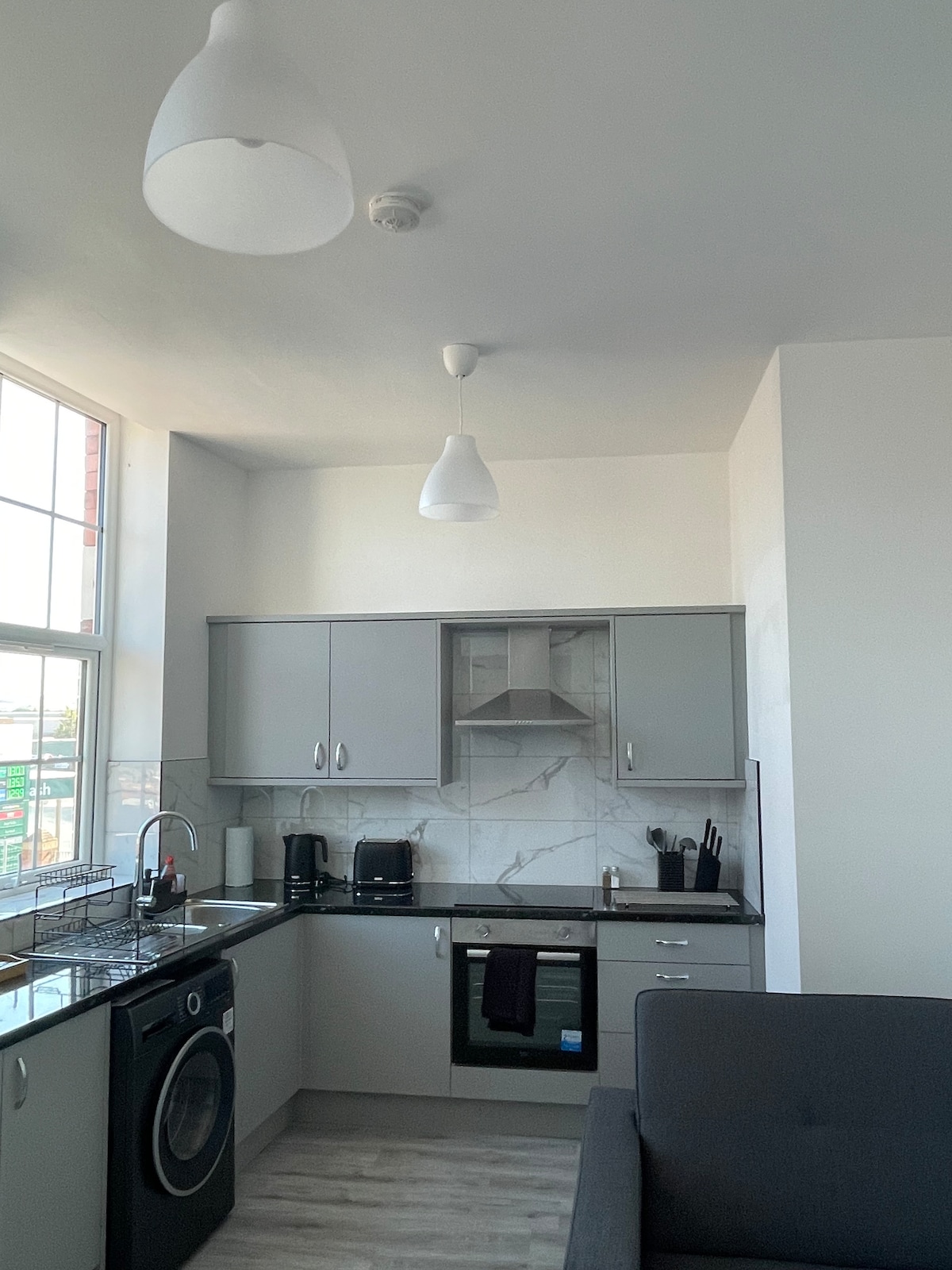 To je na novo prenovljeno stanovanje v pritličju z zasebnim dovozom in vrtom. Stavba se nahaja v osrčju mesta Cheadle. Zelo blizu trgovin, restavracij, pivnic in javnega prevoza. 10 minut do letališča Manchester in 20-25 minut vožnje do Manchester Cityja. Stanovanje ima 1 sveže urejeno spalnico z udobno zakonsko posteljo. Prostorna dnevna soba/kuhinja odprtega tipa ima raztegljiv kavč - primeren za 2 odrasli osebi, vendar je to majhna zakonska postelja.