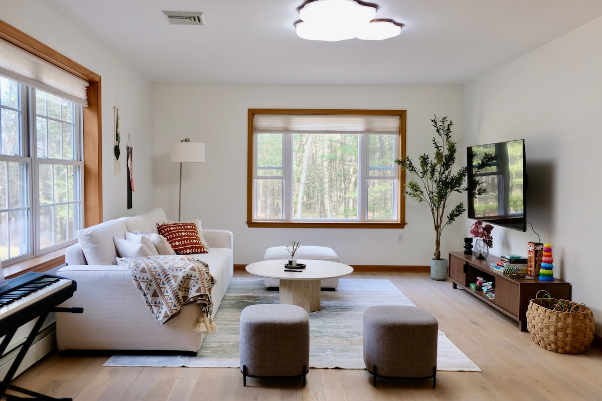 Edinstvena nova hiša po meri, zgrajena namensko zgrajena za gostje na Airbnbju. Ta hiša nudi značilno zasnovo z veliko spalnico v mansardi in kopalnico s ploščicami. Podstrešje gleda na spodnji dnevni prostor, ki ima odprto dnevno sobo, jedilnico in kuhinjo. Druga spalnica in kopalnica se nahajata v prvem nadstropju. Granit, skrilavec in milo poudarjajo pulti, nečimrnosti in tla. Videli boste tudi veliko naravnega bora, hikorija in lokalne cedre po vsej hiši.