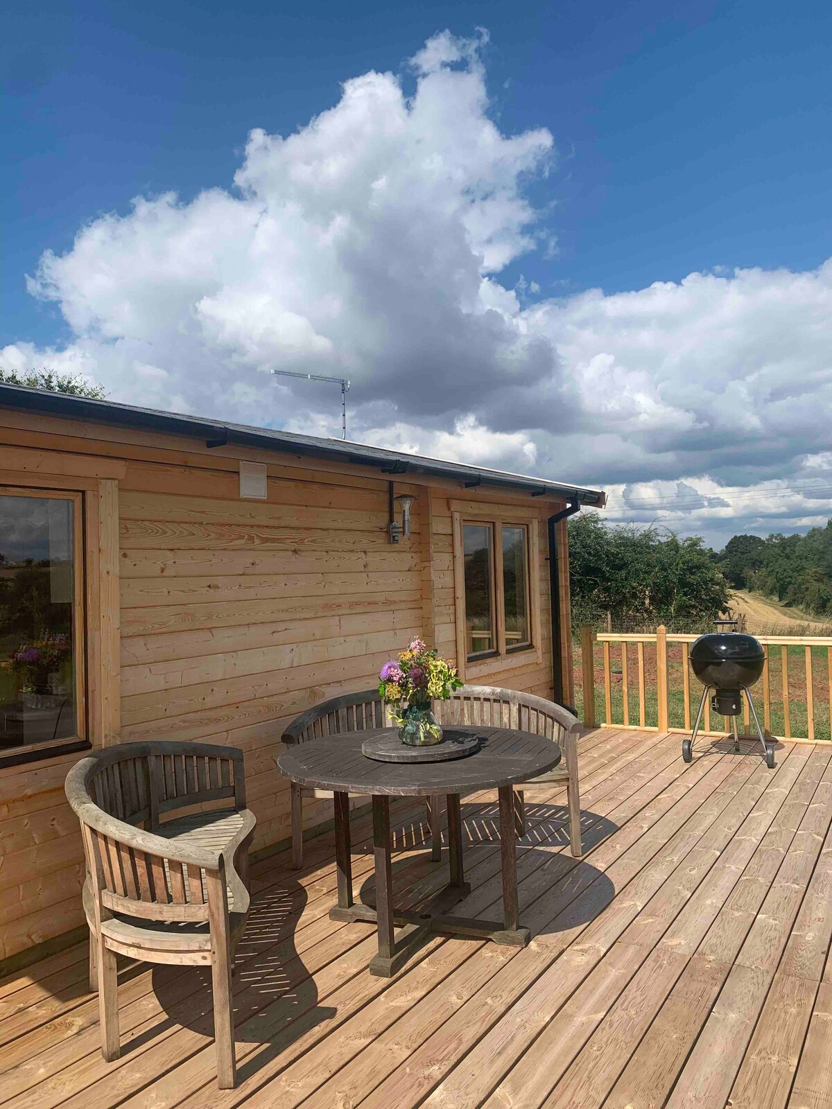 Samostojna dvosobna koča se nahaja na čudoviti podeželski strani Worcestershire z zasebnim dostopom, vrtom in veliko zasebno leseno teraso. Popolnoma izoliran s plinskim centralnim ogrevanjem in požarom. Prijeten, udoben zimski oddih ali poletni oddih 3 milje od Droitwicha in 8 milj od Worcesterja. Kot nalašč za hojo, kolesarjenje ali nakupovanje. Odlične restavracije v nekaj kilometrih. Psi in otroci so dovoljeni po posebnem dogovoru z gostiteljem. Pred rezervacijo se obrnite na gostitelja. Hitrost omrežja Wi-Fi - 6 Mb/s