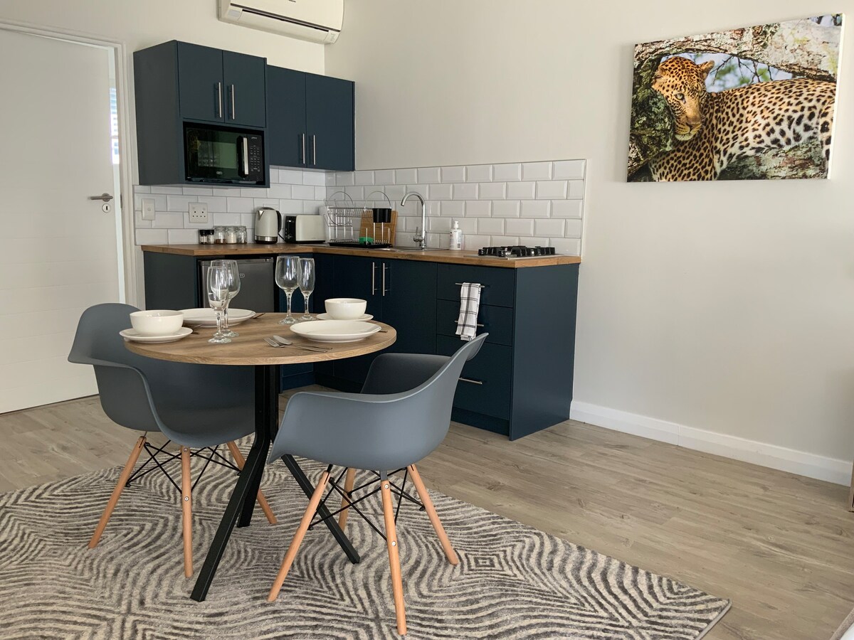 Hiška na deželi Kai je sodoben, eleganten, svetel in sproščujoč prostor, ki se nahaja v čudoviti soseski Constantia Hills. Gre za enoposteljno garsonjero in kopalnico s prho, dobro opremljeno kuhinjo, udobnim bivalnim prostorom in zasebnim balkonom/vrtnim dvoriščem. Najbolj je primeren za profesionalce in pare. To je odprt prostor, zato je priporočljiv za največ 2 odrasli osebi.