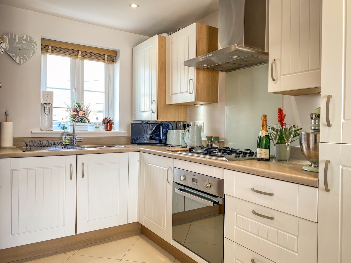 Družinam prijazen dom od doma. Nahaja se le 3 minute vožnje ali 20 minut hoje od središča mesta Bude in njegovih čudovitih plaž (in znamenitega plimskega morskega bazena), ki je odlično izhodišče za vaš kornijski oddih. Hiša se nahaja na mirni stanovanjski cesti z 2 parkirnima mestoma tik pred namestitvijo. Dva glavna supermarketa sta oddaljena le nekaj minut hoje.