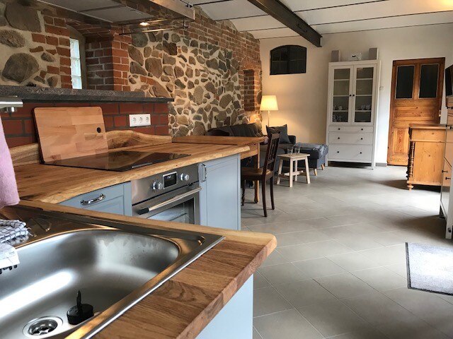 Dobrodošli v Alte Mühle Emilienhof – skrbno prenovljenem naravnem zatočišču, ki lahko sprejme do 8 gostov. Uživajte v miru, čudovitem razgledu, veliki masažni kadi pod zvezdami, tabornih ognjah na vrtu in družinam prijazni opremi. Idealno za pare, družine, skupine prijateljev, majhne zabave ali sproščeno delo z Wi-Fi-jem in razgledom na naravo. Južna terasa, na voljo so kolesa, ekološki vrt s prigrizki, dovoljeni hišni ljubljenčki – samo 1-1,5 h iz Berlina, s prevzemom z železniške postaje!