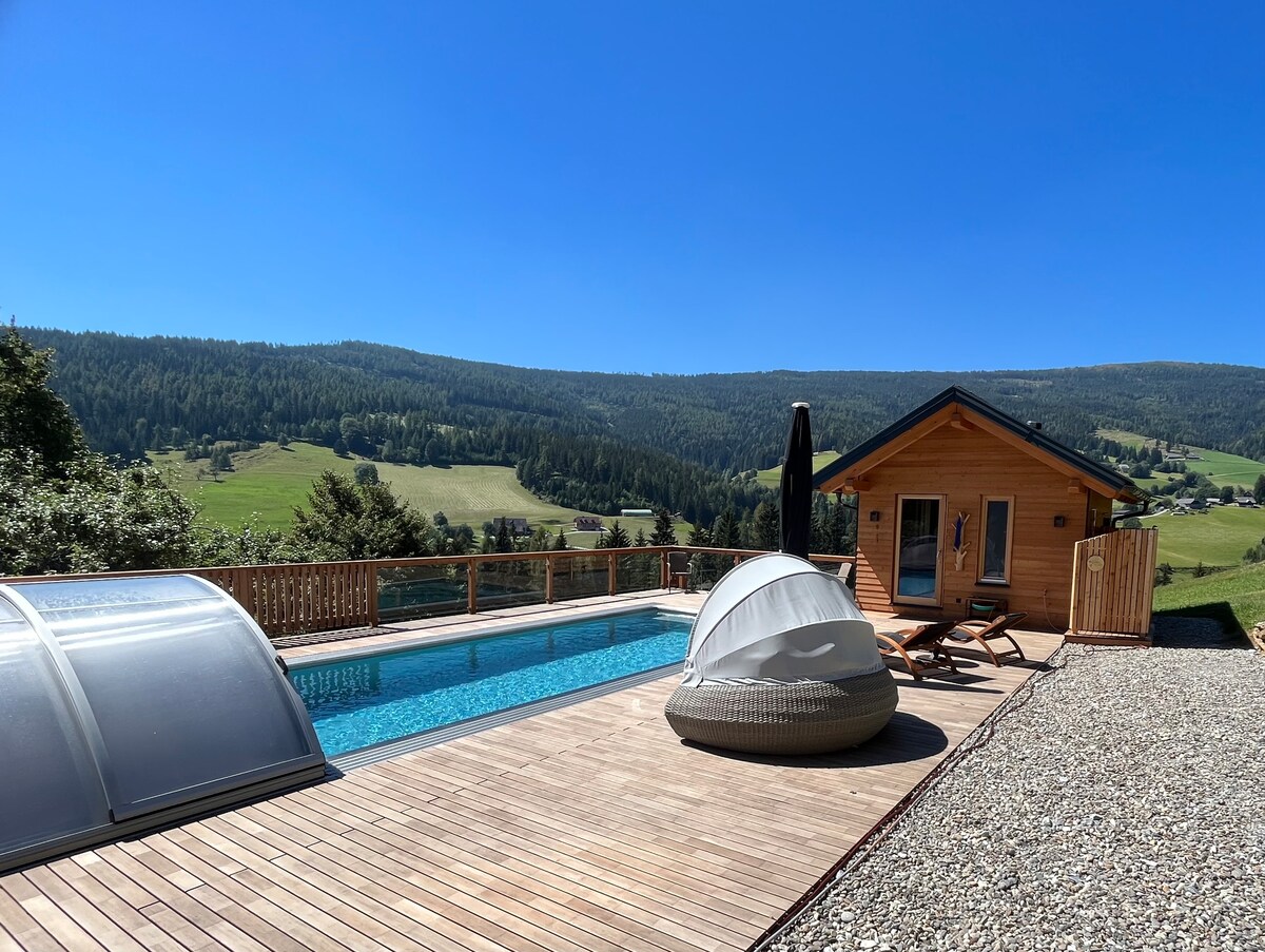 Auf 1200 Metern Seehöhe auf einem malerischen Südhang gelegen, findet man die Saualmleitn. Entspannung und Ruhe in absoluter Alleinlage, Urlaub am Land in modernem Ambiente gekrönt von einem mit Quellwasser gefüllten Naturpool, einem selbst beheizbaren Badefass und einer Panoramasauna.
