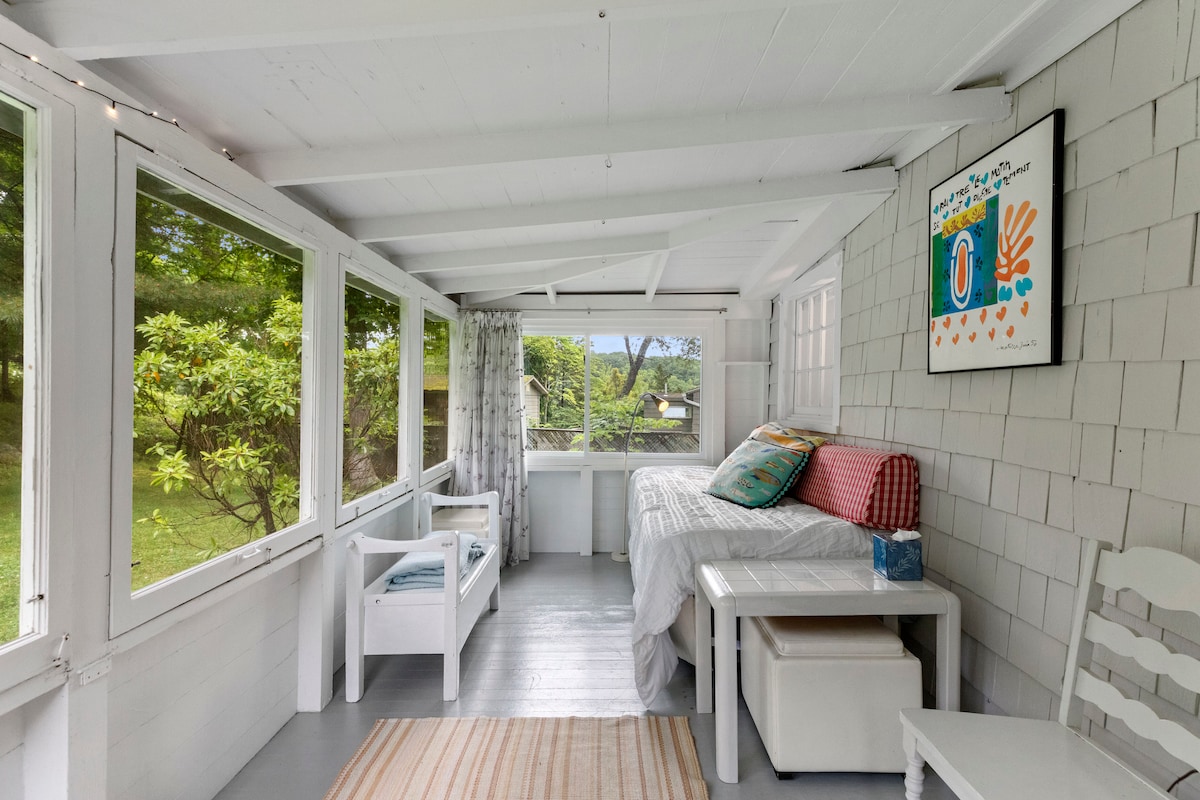 Sprostite se v tej mirni, elegantni hiški na deželi blizu plaže v Sag Harborju. To je popoln kraj za samski ali par, ki lahko uživa v življenju na plaži v Hamptonsu. V celoti opremljeno za vaše bivanje, samo prinesite kopalke. Zunaj je vaša terasa s prostorom za sedenje, jedilna miza s senčnikom, žarom in moja mini-hiška »Bouy Cottage« je čez travnik, zato bom jaz (ali drugi gostje morda tam v avgustu/septembru/oktobru). Območje ognjišča si deli z Bouy Cottage.
