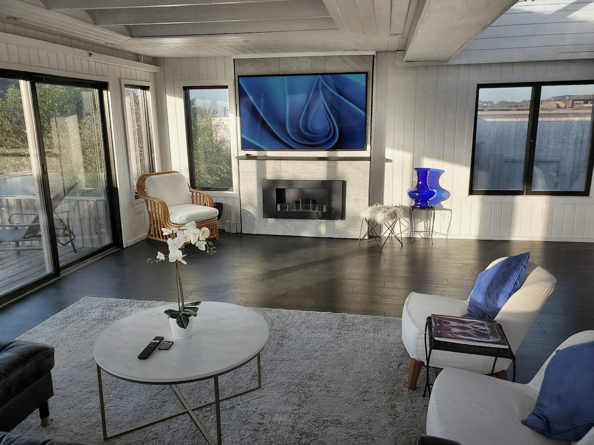 Experience a private beach in Milford and enjoy a beautiful and spacious new construction fully furnished luxury home! Scandinavian design. Only 4 houses from the best beach in Connecticut. Large outdoor deck with barbecue and tables and chairs for meals and cocktails. Color changing electric fireplace. 4 car automatic garage. Walking distance to ice cream parlors and nature preserve. Rent kayaks and paddle boards down the road. Enjoy your private beach with tide pools at low tide!