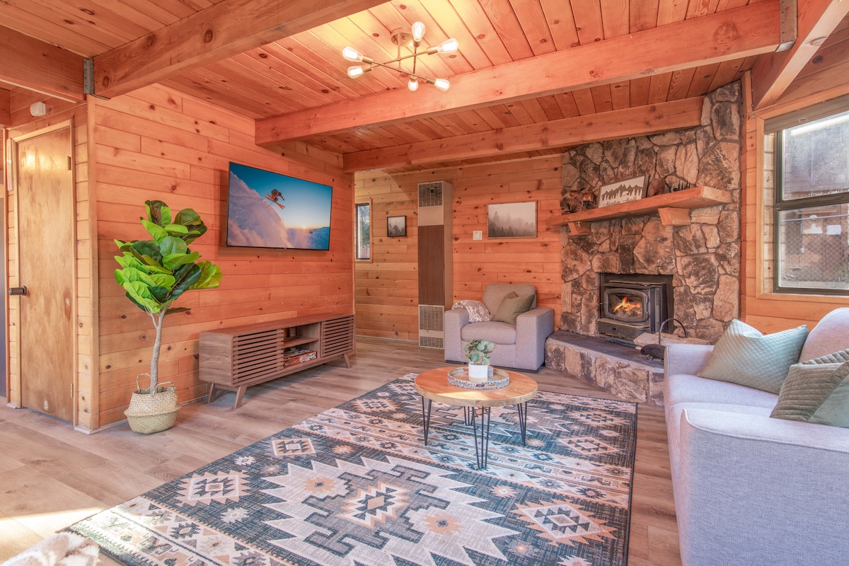 Pobegnite v gore v tej elegantni in na novo prenovljeni koči za 4 osebe, ki jo je zasnoval arhitekt z mislijo na vaše udobje. Uživajte na svežem zraku iz zasebne masažne kadi. Notranjost: Ena spalnica: z udobno zakonsko posteljo (Queen). Dnevni prostor: sprostite se na plišastem spalnem kavču, ki je kot nalašč za dva gosta. Zunaj: Zasebna masažna kad: potopite se v toplino in uživajte v gorski pokrajini. Lokacija: Na priročni lokaciji v bližini jezera Big Bear Lake in v bližini smučišča z neposrednim avtobusnim prevozom.
