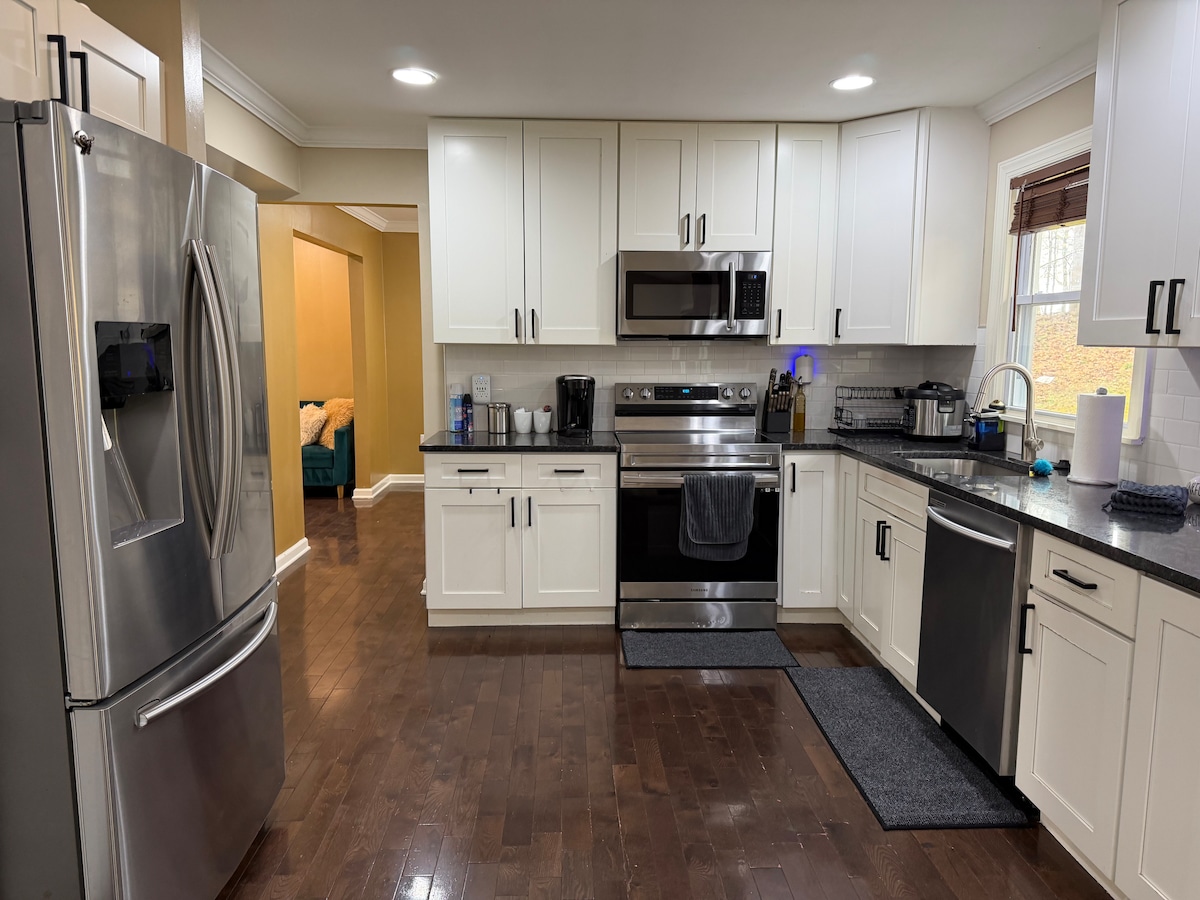 Prebudite se ob očarljivem ptičjem petju iz gozdnega parka, ki se skriva tik za tem udobnim prenočiščem. Uživajte v električnem naslanjaču in 65-palčnem pametnem televizorju ob kaminu. Odprta kuhinja po meri (brez pečice), udobna spalnica z zakonsko posteljo, zasebna kopalnica, pralnica in ograjeno dvorišče za sproščujočo zasebnost. Idealno za pare ali poslovne potnike – le nekaj minut do Kingstowna, Ft. Belvoir, National Harbor, staro mestno jedro Aleksandrije in Washington DC, z enostavnim dostopom do metroja in dvema dodeljenima parkirnima mestoma.