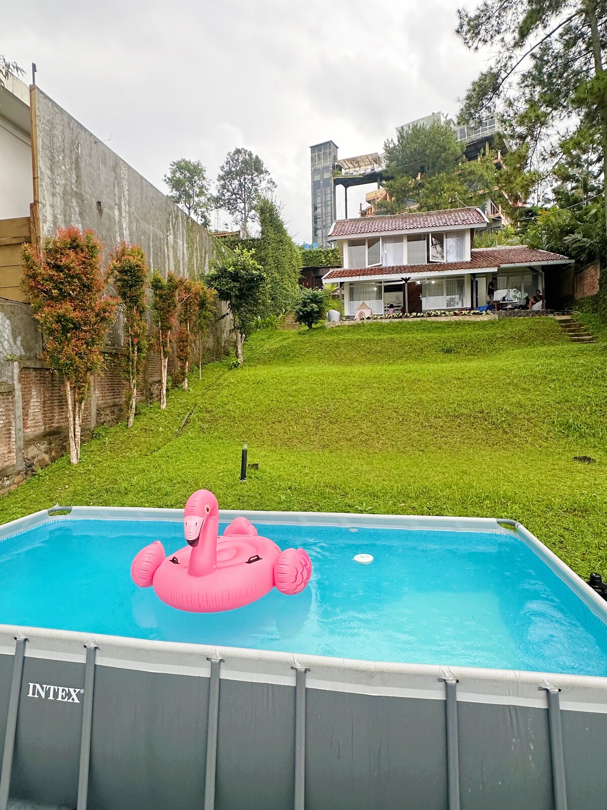 Zasebna vila, čudovita pokrajina podnevi do noči, zrak je čist in svež. udoben balkon je kot nalašč za klepet in žar. Zasebni neskončni bazen in streha sta na voljo z odličnim razgledom. Vila s čudovitim vzdušjem, z zabavnimi objekti (biljard in karaoke), v bližini mesta, kjer so najbolj priljubljene kavarne v mestu Bandung gostom, ki živijo z malčki, nudimo igrišče za vašega ljubljenega otroka, da se lahko pridružijo in uživajo v vašem bivanju