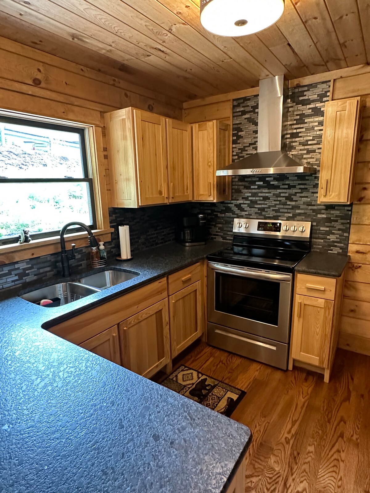 Ta luksuzna koča, obdana z drevesi mirne jeseni, združuje rustikalni šarm z dizajnerskim udobjem. Uživajte v popolnoma ograjenem dvorišču, ognjišču in elegantni notranjosti, ki se počutijo kot butično prenočišče. Zasebna in premišljeno urejena - vsaka podrobnost vabi na sprostitev. Pijte kavo na verandi, potovajte ob kaminu in se sprostite v prostoru, kjer se boste počutili kot doma - samo še boljše.