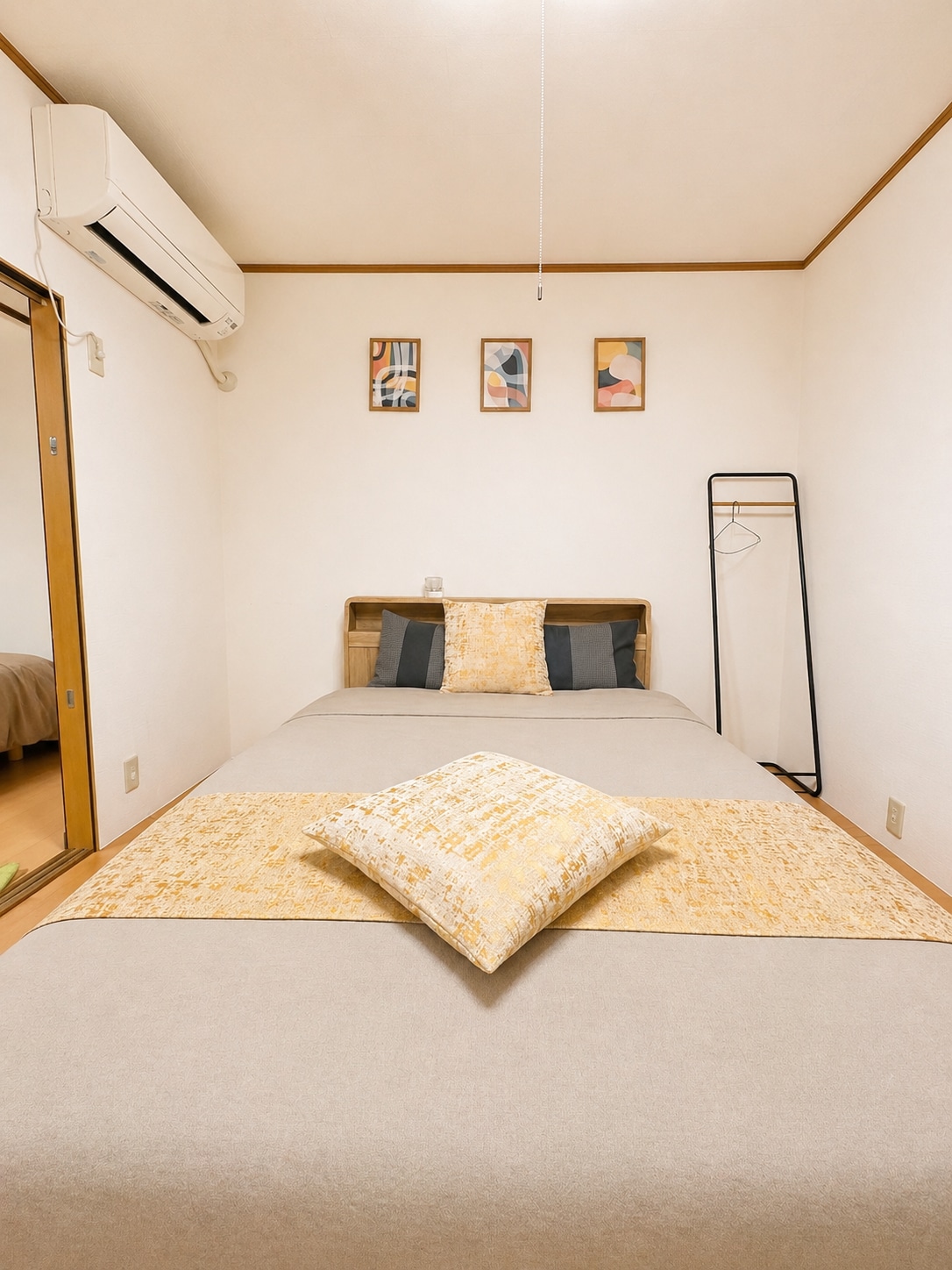 Namba 6 točk | 33 m² celotno nadstropje | Dve 1,4 m postelji · 4 osebe | Tiho in primerno za spanje | Neposredna povezava z letališčem | Umeda | 5 minut do postaje Kishinosato | 201
