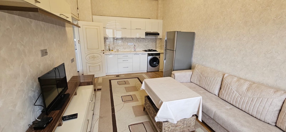 Udobno in popolnoma opremljeno 1+1 stanovanje, premišljeno do najmanjše podrobnosti. Svetla dnevna soba s sodobno notranjostjo, udobnim kavčem in velikim televizorjem ustvarja domačno vzdušje. Popolnoma opremljena kuhinja. V bližini trgovin KARACA, kavarn Desertzade, restavracij, lekarn, McDonald'sa, Picerije Mizza, avtobusnih postajališč in nakupovalnih centrov. V bližini so trgovine KARACA, kavarne Desertzade, restavracije McDonald's, Pizza Mizza ter avtobusne postaje in nakupovalni centri. 500 metrov do središča Sumgaita.