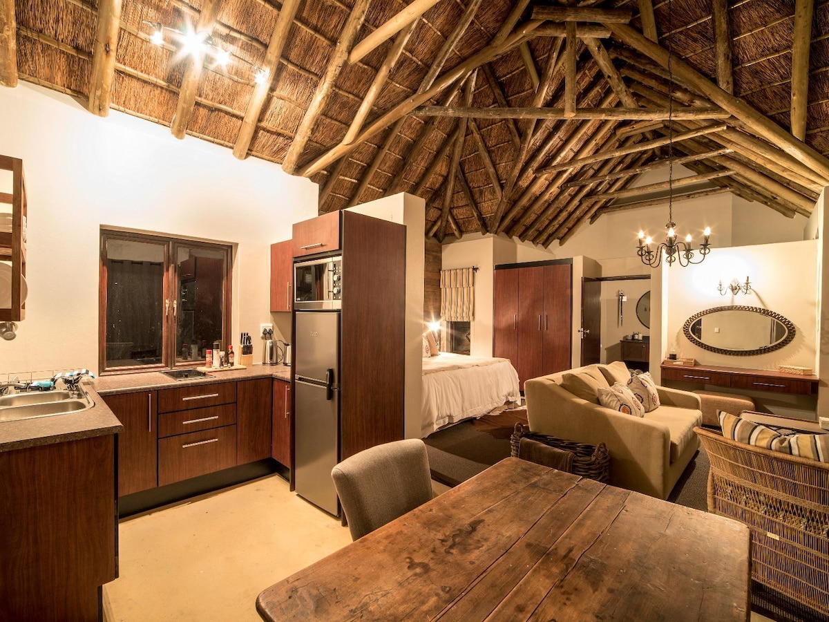 Elegantly decorated cottage leads off onto a spacious balcony with gas barbeque, overlooking the dam & surrounding bushveld. Luxuriously furnished with super king-size bed & pillows, fully equipped kitchenette & bathroom with slipper bath & shower.
