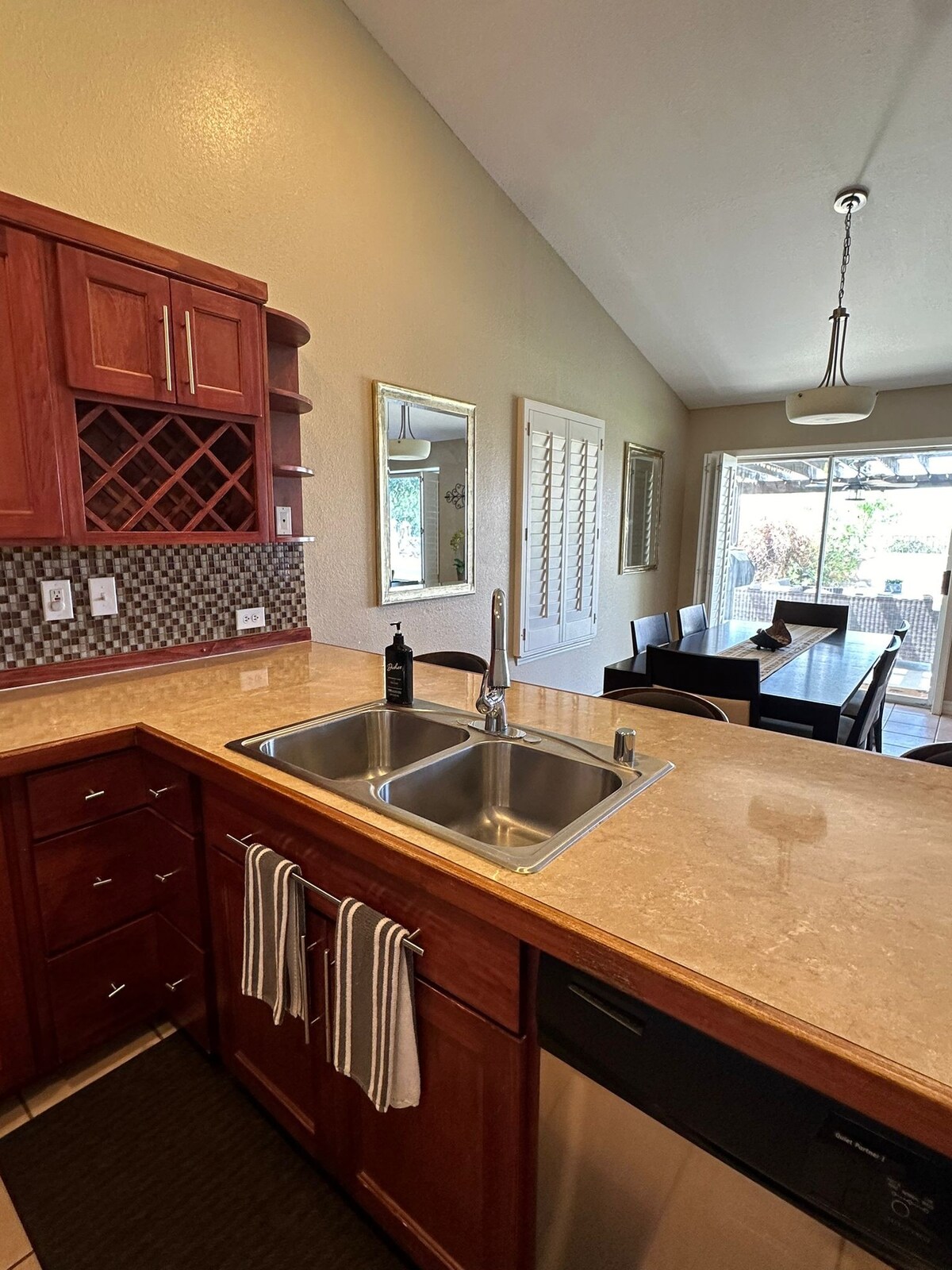 No parties allowed. 6 guest maximum. Relaxed home offers a tranquil, enjoyable energy for your travels. Spacious 3 Bed+3 bath. Cozy west side neighborhood. Generous, comfortable lounging areas, fully stocked kitchen+workspace. Enjoy new mattresses & fine linens. Take in glorious sunsets views pool side. New decking+faux lawn to chill out or grill in. Charming sun room. Garage for your car. *Strict no party policy. Security camera located in the front yard. Immediate eviction if more than 6 guest