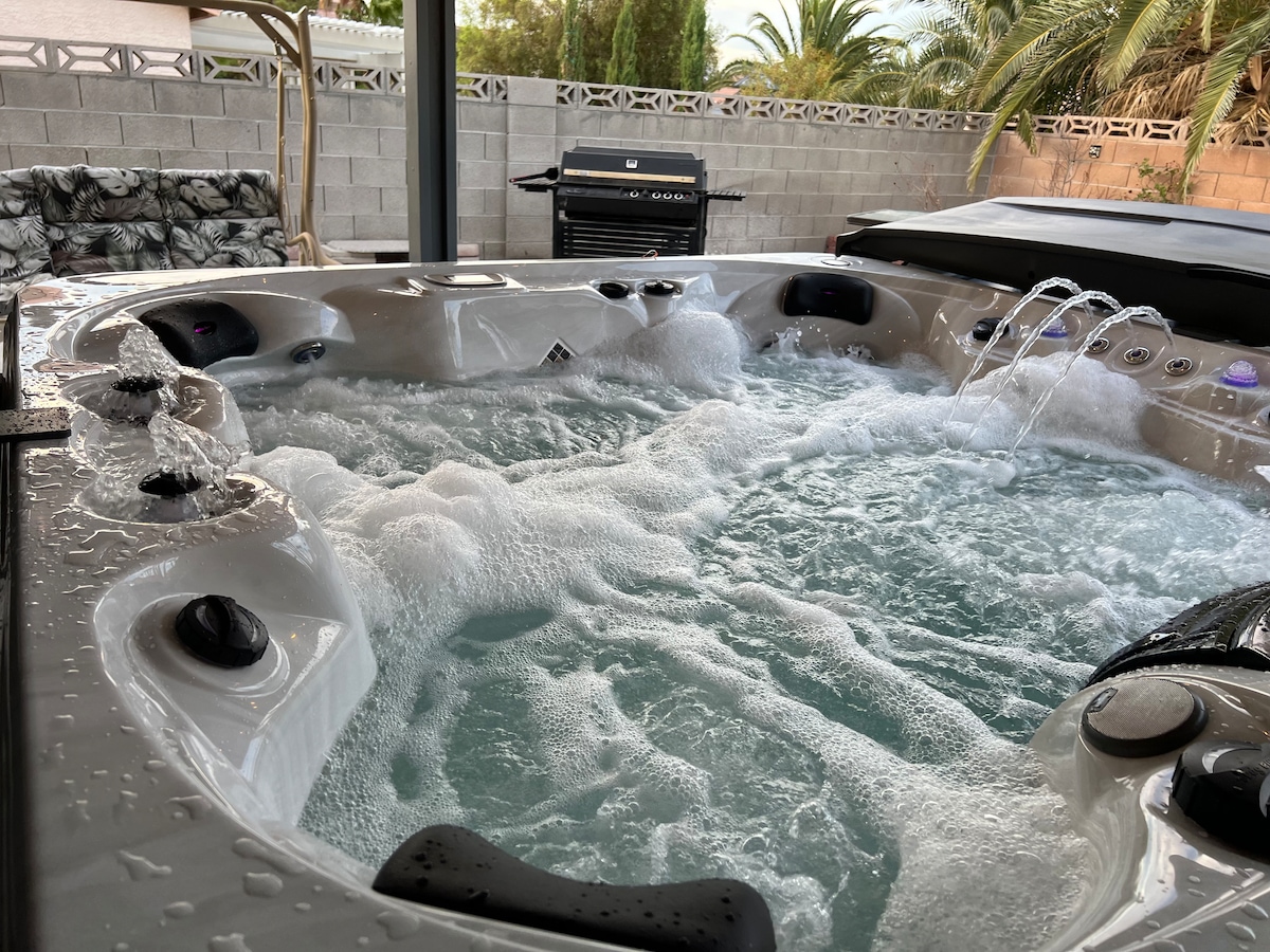 Čaka vas čudovit zasebni apartma z 1 spalnico, ki vključuje kuhinjo, zasebno kopalnico, jedilno mizo, igre, delovni prostor in udobno dnevno sobo s kavnim kotičkom. Sprostite se v zasebni oazi s čudovitim dvoriščem, velikim bazenom (globokim 1–3 metre) in ogrevanim masažnim bazenom. Popolno za sprostitev po razburljivem dnevu v Vegasu. Primerno za romantični pobeg, družinsko potovanje ali počitnice za enega. Rezervirajte zdaj in izkusite svoje najboljše počitnice. Uživajte v popolni zasebnosti z ločenim vstopom in brez interakcije z gostiteljem.