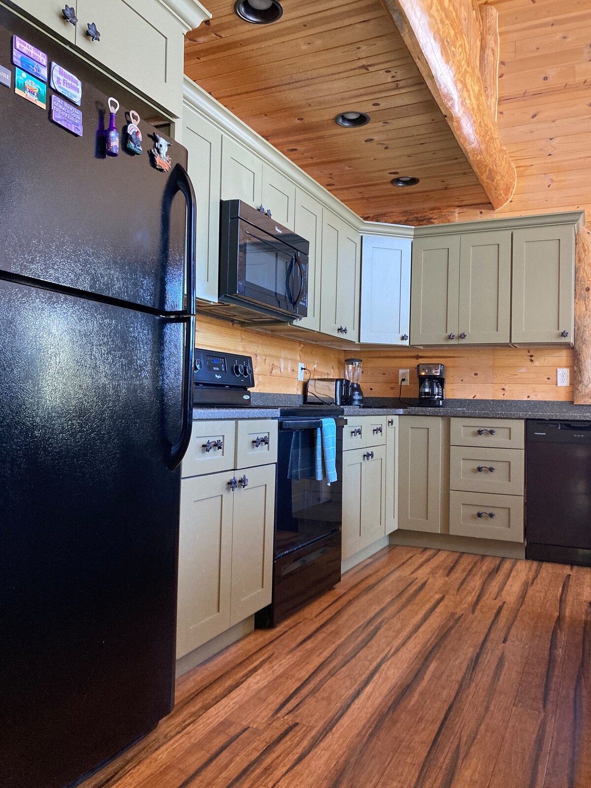 Sprostite se v tej boho koči, ki je 5 minut oddaljena od jezera, polna udobja, obkrožena z drevesnimi parcelami z vseh strani! Dve luksuzni spalnici z veliko zakonsko posteljo, vsaka z mirnim delovnim prostorom in 14-palčno kraljevsko vzmetnico. Tretja soba z igračami, knjigami in 6 neverjetnimi vgradnimi pogradi z vrhunskimi Beddys za prijeten spanec. Prostorna odlična soba z udobnim kaminom in jedilnico za več kot 10 oseb. Velika kuhinja z otokom in shrambo, vključno z opremo doma. Plus garažna igralnica - pong, namizni nogomet in arkadna košarka! Počitek in polnjenje!