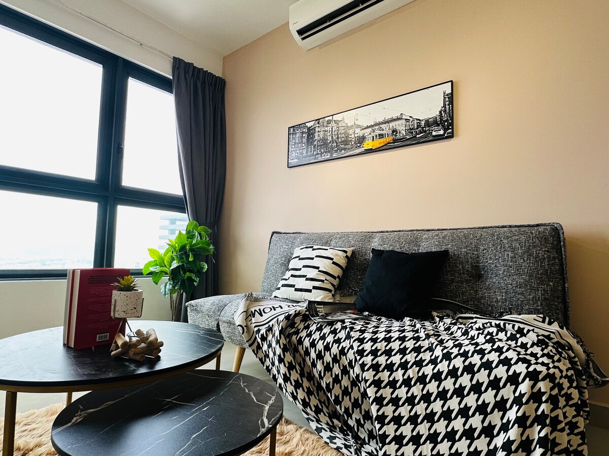 Ta enota se nahaja na naslovu Sunway Velocity TWO, Block/Tower C. - 5 minut hoje do nakupovalnega središča Sunway Velocity Mall, Sunway Collegea in zdravstvenega centra (povezan most s pokrito peš potjo od stanovanja) - V celoti opremljen s pametno televizijo, klimatsko napravo, pralnim strojem+sušilnim strojem, hladilnikom itd. - Enostaven dostop do nakupovalnega središča Aeon Mall, nakupovalnega središča IKEA/MY Town. - Preprosto kuhanje je dovoljeno s hladilnikom, mikrovalovno pečico, štedilnikom, majhnimi lonci in ponvami. - Wi-Fi je na voljo. - Drugi objekti vključujejo bazen in telovadnico.