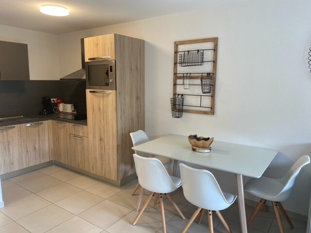 Stanovanjska garsonjera z dvigalom Les aurouze Majhen balkon s pogledom na gore in dolino, Wi-Fi in brezplačno parkiranje. Vhodna dvorana z omaro, police za smučarsko opremo. Dnevna soba s televizorjem, modularno mizo in 4 stoli, ki jih je mogoče shraniti vanjo. Raztegljiv kavč 140 x 190, Na voljo so postelja v medetaži (140 x 190), predalnik s 3 predali, odeje in vzglavniki. Kopalnica s sušilnikom za brisače in sušilnikom za lase. Zagotovite: rjuhe, prevleke za odeje in prevleke za vzglavnike. Krpe za posodo, brisače