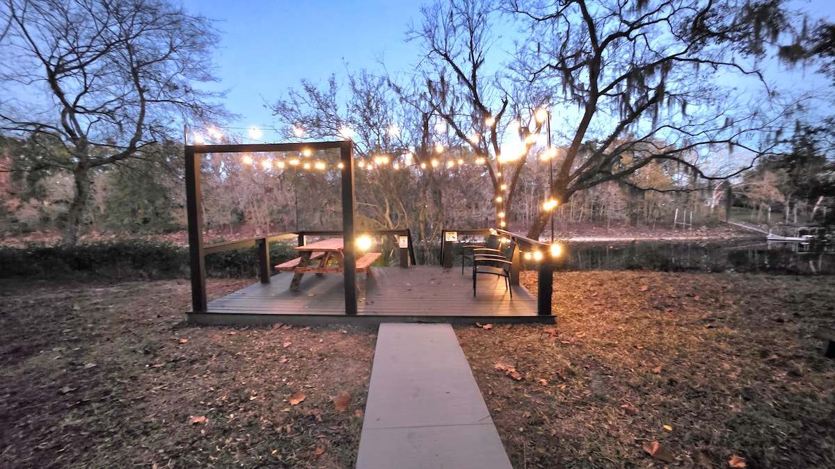 Dobrodošli v »The Roost« – vašem zasebnem umiku ob reki. Uživajte v reki Suwannee tik pred vrati v tem samotnem prenočišču ob reki. Sprostite se na dvignjenih verandah, namakajte se v masažni kadi, opazujte ptice in preživite dneve ob reki. Ta skrivališče ponuja prostorno, sodobno kuhinjo in kopalnico, zen ribnik z zlatimi ribicami in obilico divjih živali, zaradi česar je kot nalašč za sproščujoče počitnice. Gibson Park je oddaljen le nekaj minut. Rezervirajte ta skriti dragulj in odkrijte življenje, za katerega niste vedeli, da vam manjka 😍