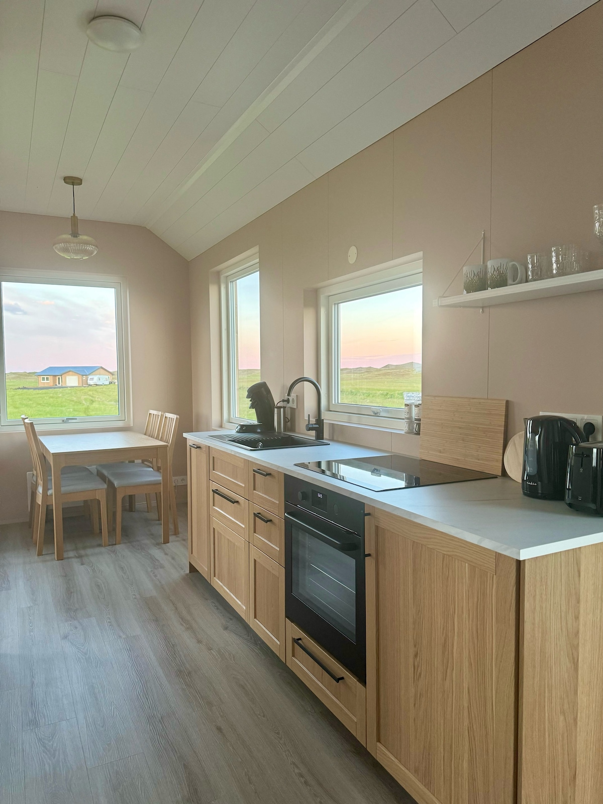 Udobna, minimalistična mini vila v velikosti 36 kvadratnih metrov za največ 2 osebi (vključno z otroki od 0 do 13 let), le 2 km od Fjaðrárgljúfurja. Mini vila ima osupljiv razgled na gore in mahovito polje lave. Vključuje spalnico, sodobno kopalnico s prho in popolnoma opremljeno kuhinjo s pečico/mikrovalovno pečico, pomivalnim strojem in hladilnikom. Uživajte v jutranji kavi iz kavnega aparata Nespresso Citiz, medtem ko se potopite v mirno islandsko pokrajino.