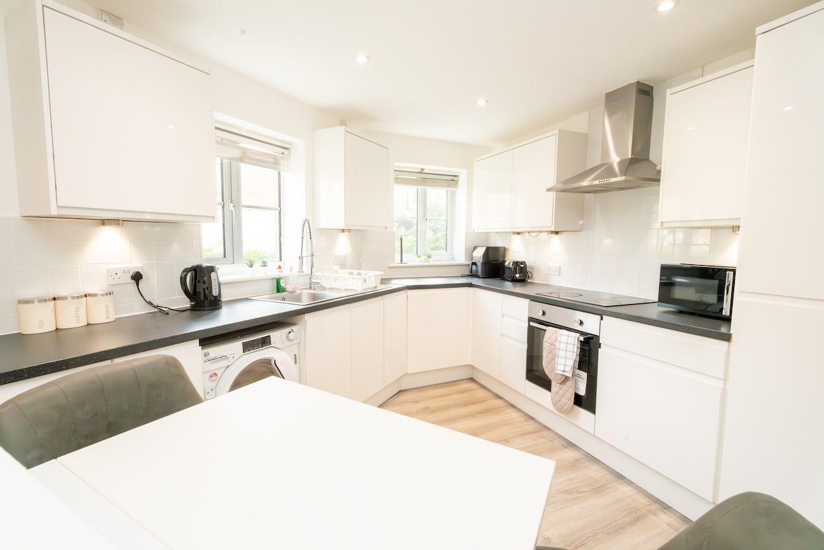 Spacious 3-bedroom house ideal for contractors, families and longer stays, with driveway parking and easy access to Ebbsfleet International and Bluewater. Perfect for families, corporate stays and relocations. Private driveway parking, fast WiFi and generous living space throughout. Just 5 minutes to Ebbsfleet International (17 mins to London St Pancras) and 10 minutes to Bluewater. Opposite lake and parkland in a quiet residential setting, with fully equipped kitchen and private garden –