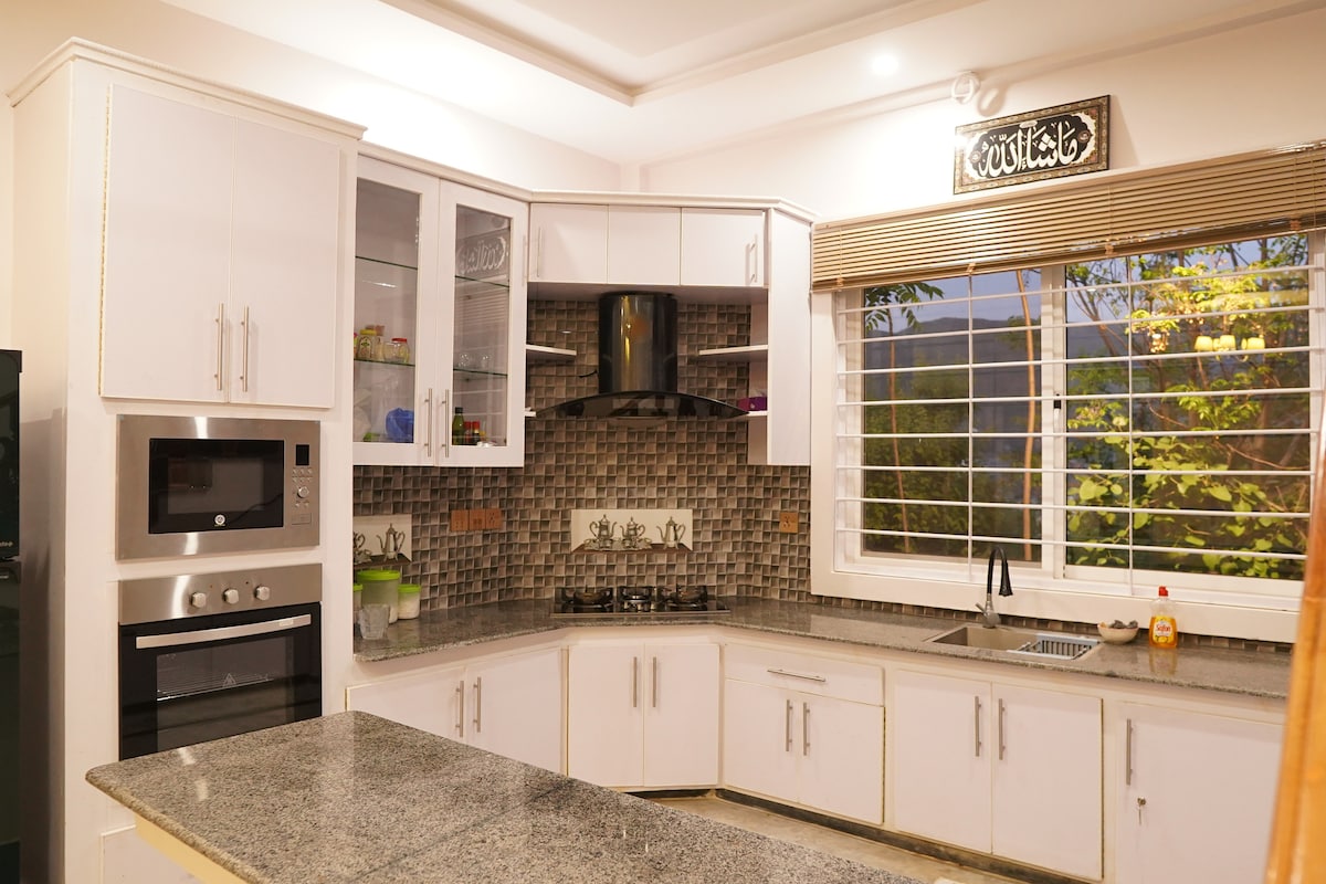 Luksuzno prenočišče s 5 spalnicami v Swatu Uživajte v elegantnem oddihu v tem elegantnem prenočišču s 4 zakonskimi posteljami, 3 enojnimi posteljami in 5 kopalnicami (4 spalnice). Sprostite se v prostorni dnevni sobi, sprehodite se po zasebni sprehajalni poti in z lahkoto parkirajte na širokem zasebnem parkirišču. Nahaja se na kraljevem območju Swat - čakajo vas udobje, eleganca in priročnost. Rezervirajte zdaj za vrhunsko bivanje!