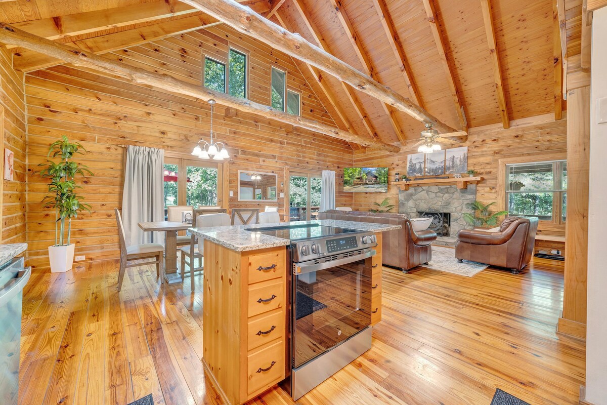 Set in the beautiful Alleghany Mountain Range, the Cabin On The Creek is a custom-built luxury cabin with amazing views and access to Potts Creek on a private wooded property. Multiple outdoor areas to enjoy the sights and sounds of the creek include the back porch, observation deck with Adirondack chairs, and walking path that leads to a stunning view of the Potts Creek “Sinks.” Enjoy the tranquil natural environment as you make use of the outdoor grill, picnic area, fire pit, and hot tub.
