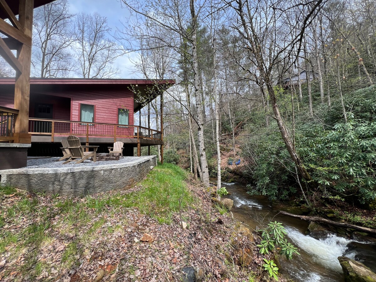 This brand new cabin sits directly across from the Tuckasegee River. It’s called Fishin Hole because it’s the hot spot for fly fisherman all over the country. Tons of beautiful trout to catch! You can boat, canoe, fish and tube down this amazing River. There is a public boat dock approx 1/8 mi down river. The cabin has extra parking below the house. Minutes from Dillsboro and many more attractions Great location right off highway 74 and 441. We welcome everyone to our cabins. 🌈
