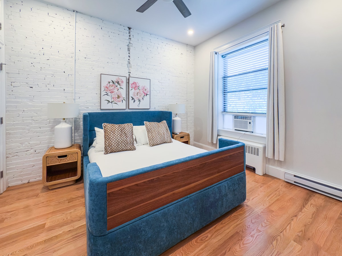 Odkrijte The Chester, butično prenočišče v osrčju South Enda. Ta prostor je zasnovan tako, da sprejme do 4 goste, vključuje veliko zakonsko posteljo, raztegljivo zakonsko posteljo in popolnoma opremljeno kuhinjo. Uživajte v razgledu na mesto, klasičnih izvirnih kronskih letvah iz bostonskega rjavega kamna, pametnih televizorjih in elegantni sodobni prhi s ploščicami. To urbano zatočišče, ki je profesionalno okrašeno z mešanico sodobnega in starinskega pohištva, ponuja udobje in slog v osrčju živahnega mesta.