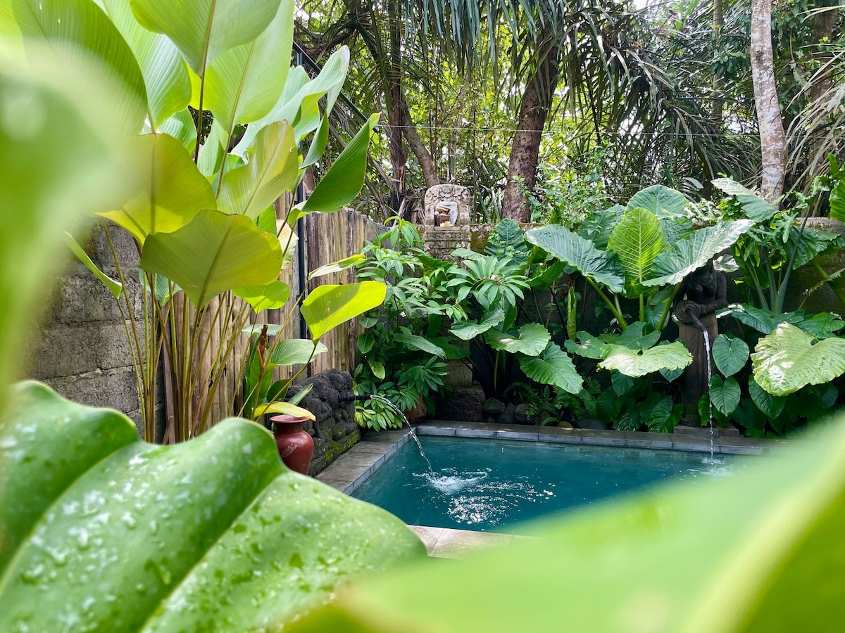 Naša očarljiva hiša, zgrajena v tradicionalnem slogu, je kot mirna oaza. Bujni tropski vrtovi, sproščujoče vzdušje in dovolj prostora za sprostitev celotne družine. Hiša je stara več kot 50 let, vendar je bila z ljubeznijo prenovljena, da bi ustvarila udoben prostor. Vključili smo celo tradicionalne gradbene prakse z uporabo meritev telesa in umestitev čaker za harmoničen pretok energije. To je popoln oddih na Baliju za družine, ki iščejo sproščujoč oddih.