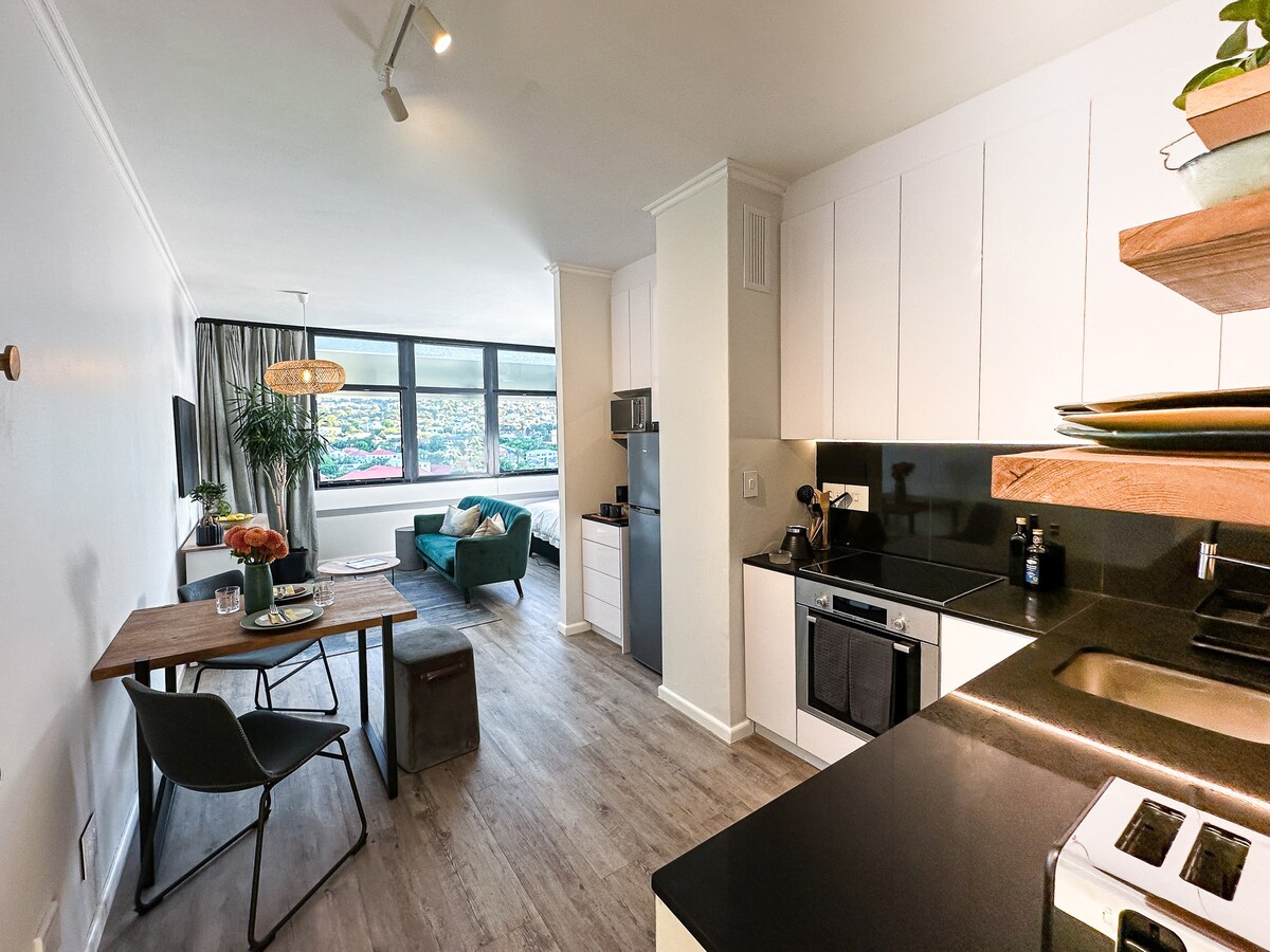Ta na novo prenovljena elegantna garsonjera, ki se nahaja v zelo priročnem in varnem stanovanjskem bloku Gardens Shopping Centre, ima vse, kar potrebujete dobesedno na vašem pragu, da uživate v Cape Townu in okolici. Nahaja se v 12. nadstropju in se ponaša z osupljivim razgledom na legendarno namizno goro ter je kot nalašč za sprostitev po celodnevnem ogledu znamenitosti ali za delo na daljavo s hitrim in zanesljivim omrežjem Wi-Fi. Brezplačno varno tajno parkiranje je mogoče urediti z neomejenim plačljivim parkiranjem za goste.
