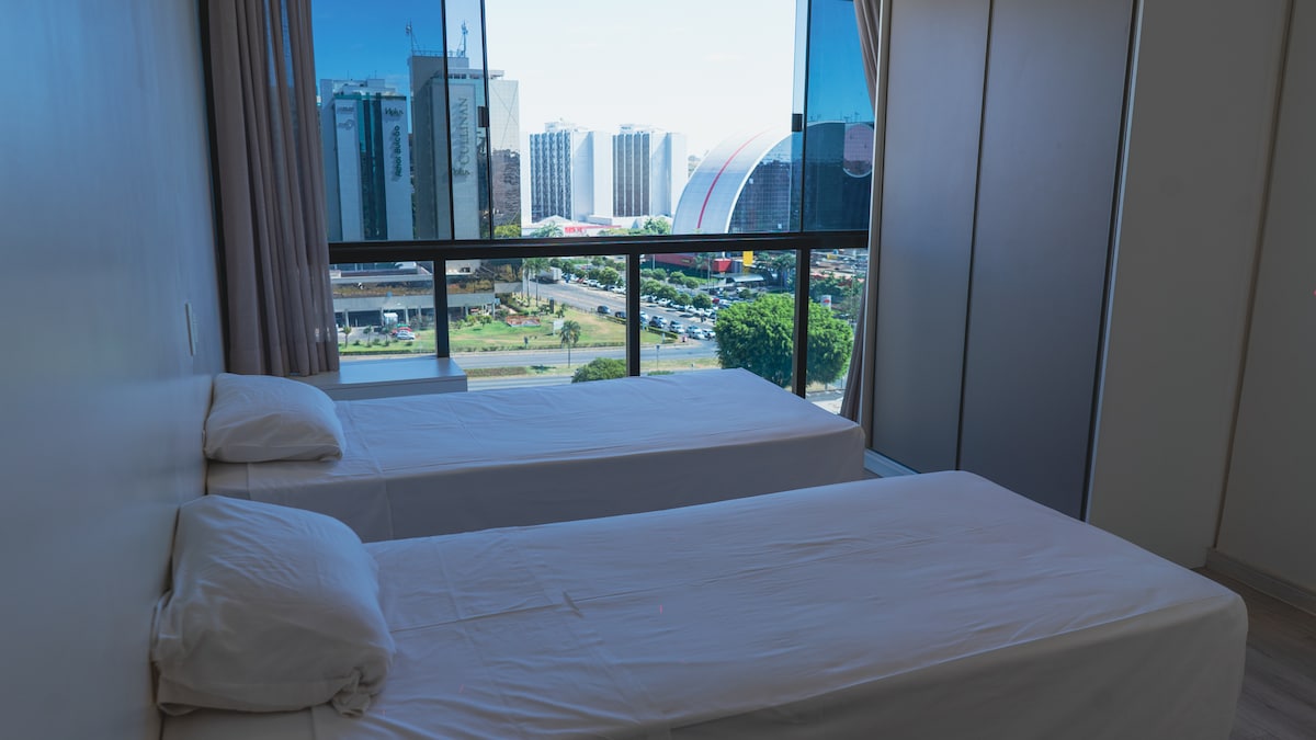 Vaše doživetje v Braziliji bo fantastično v tem očarljivem zasebnem stanovanju v središču mesta. 15 min od letališča, 8 min od Praça dos 3 Poderes. Poleg razglednic v Braziliji, kot sta TV stolp in Arena BRB - Mané Garrincha. Čez cesto boste v nakupovalnem središču Brasília Shopping z več kot 150 trgovinami in nekaterimi najboljšimi restavracijami v mestu. Banke, lekarne, biroji za spremembe. Spite na zakonski postelji z novo posteljnino. Vse je zelo čisto in dobro poskrbljeno.