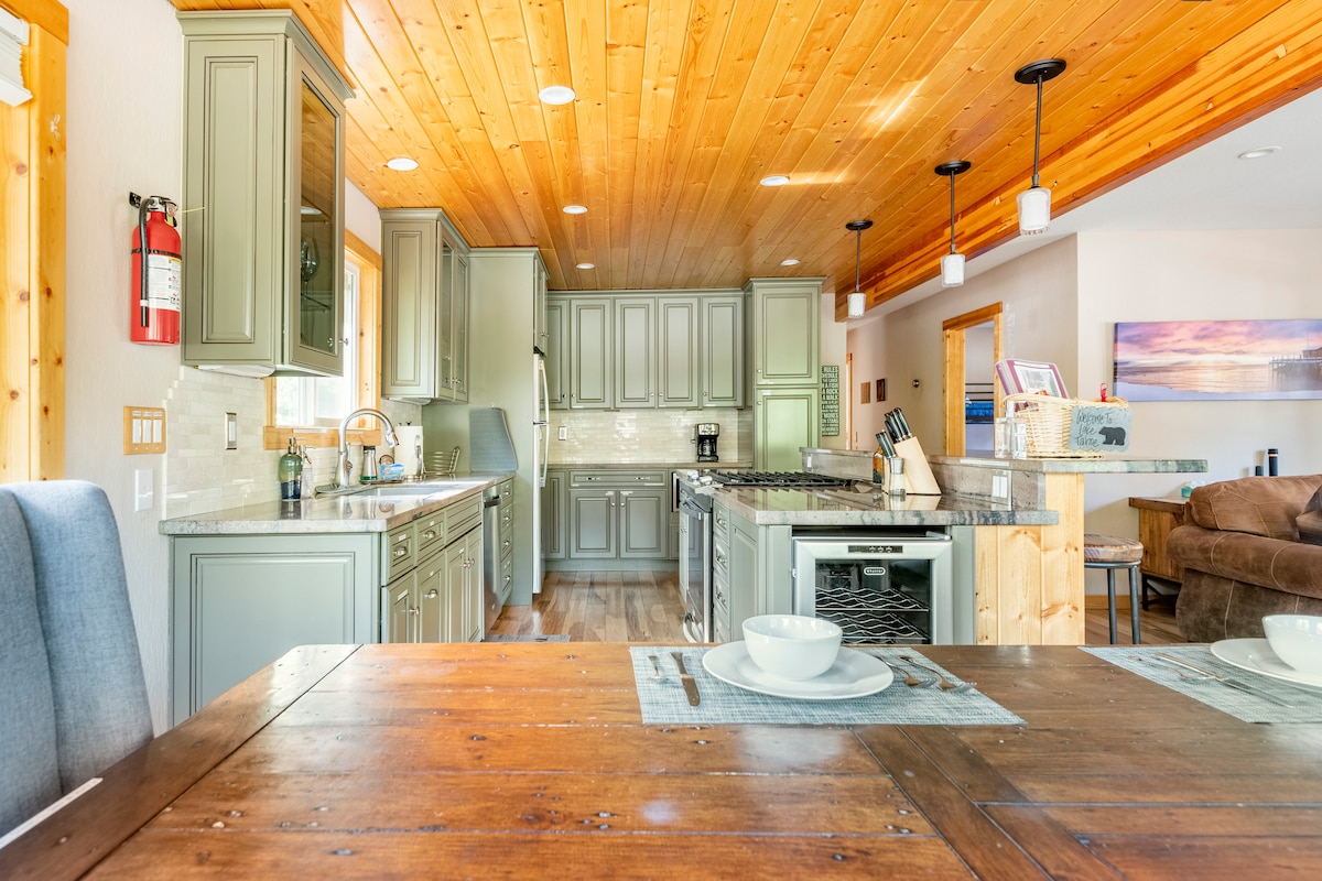 Escape to our Craftsman cabin—where mountain charm meets modern comfort. Just six blocks from the lake, perfect for up to 4 guests: cozy up by the gas fireplace, cook in the fully equipped kitchen, and unwind in the clawfoot tub or infrared sauna. Two dedicated desks make remote work easy. Step out the back to wooded trails with a creek and lake views; walk to the beach and local restaurants, and reach top ski resorts ~15 minutes away. The ideal base for a restful, memorable stay.