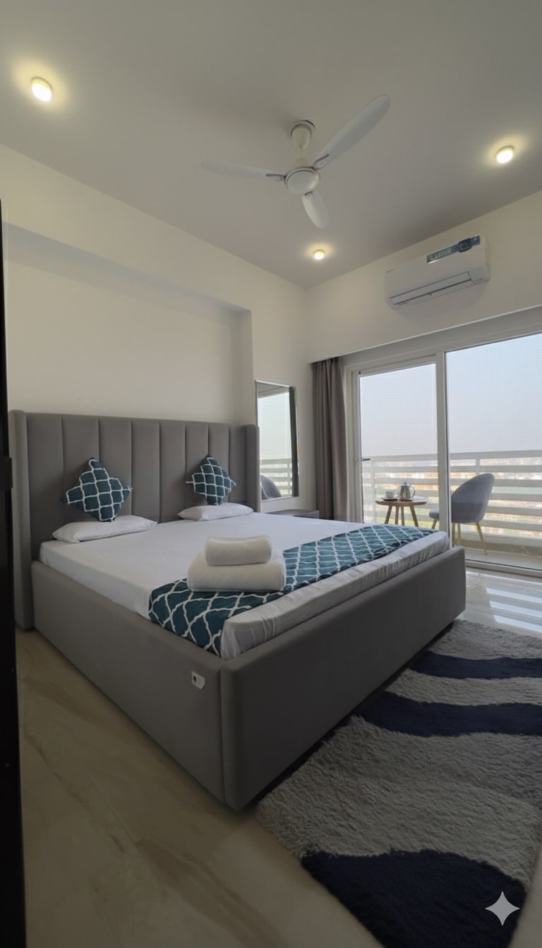 Vrindavan's Stunning Luxurious Suite - tasteful colors, corners & more 📍 Prime Location: ✔ Prem Mandir – 3 km (10 min) ✔ ISKCON Temple – 3.5 km (12 min) ✔ Banke Bihari Temple – 4 km (15 min) ✨ Why Stay Here? ✔ Luxurious box-style bed for ultimate comfort ✔ Inspired by Rajasthan’s folklore & vibrant culture ✔ 24x7 Lift | High-Speed WiFi | Fully Stocked Amenities Discover a unique blend of urban luxury and Indian heritage in this 11th-floor designer suite with breathtaking views. Welcome Home!