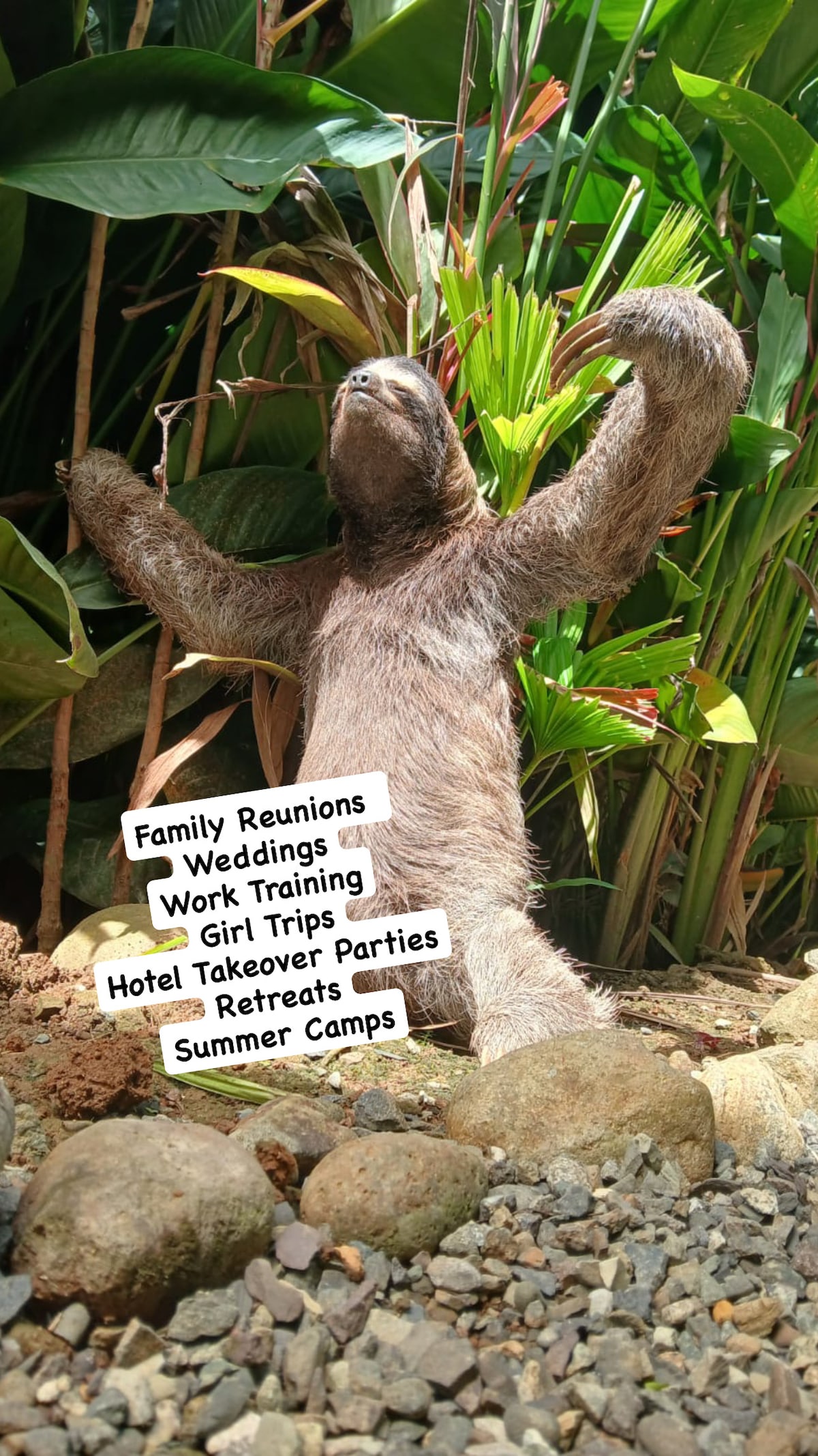 Dobrodošli v Pachamama Nueva, vašem zasebnem zatočišču v džungli ob mirni reki Ernesto, kjer so na voljo tudi kajaki. Do plaže Punta Uva je 5 minut hoje. Namestitev lahko sprejme 22 oseb. Na voljo so velika hiša s 3 spalnicami in 2 kopalnicama, tri čudovite kabine različnih velikosti in nova osupljiva nadstropna suita. Vse enote imajo kuhinjo. Predstavljajte si svojo skupino, obkroženo z naravo, ki opazuje opice in lenivce, vesla do morja, peče na žaru, se sprošča ob ognjišču in se sprehaja do očarljivih lokalnih restavracij.