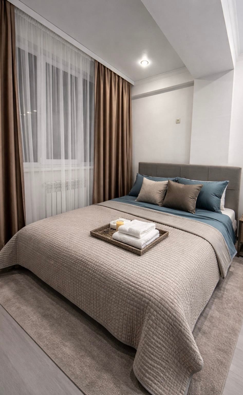 Udobno stanovanje v središču mesta s pogledom na gore. Čisto in udobno studio stanovanje v 12. nadstropju v mirnem predelu centra mesta. Balkon ima čudovit razgled na gore: zjutraj se lahko srečate s skodelico kave, zvečer pa uživate v luči prometnega mesta. Notranjost v mirnih barvah ustvarja vzdušje udobja in harmonije, kuhinjski studio pa vam bo omogočil, da pripravite svoje najljubše jedi. Stanovanje ima popolno čistočo, svežo posteljnino in premišljeno udobje za vaše bivanje.