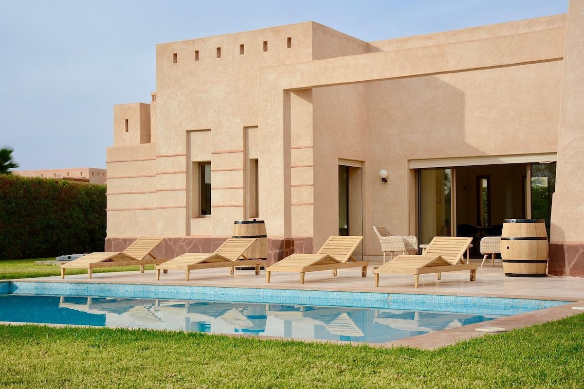 ❤️ Relax, Treat Yourself, and Rejuvenate ● 3 min – Famous & Waky Beach ● 5 min – Aqua Mirage, PalmGolf ● 7 min – Bd Mohamed VI, Mégarama, Kart Racing ● 8 min – Al Mazar Mall, Oasiria and Pickalbatros Aquapark ● 20 min – Jemaa El Fna, Airport & City Centre ❤️ Features & Amenities: ● Large Living Areas, Smart TV ● 3 Queen Beds | 2 Modern Baths ● AC & Heating, Washer ● Fast Wi-Fi ● Private Pool & Garden ● Fully Equipped Kitchen ● Washing Machine ● Free Private Parking ● 24/7 Secured Residence